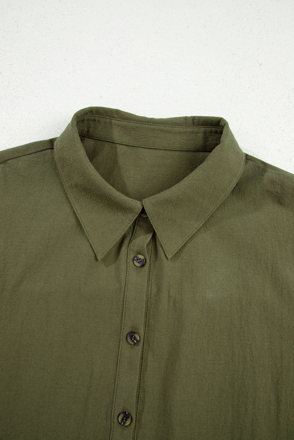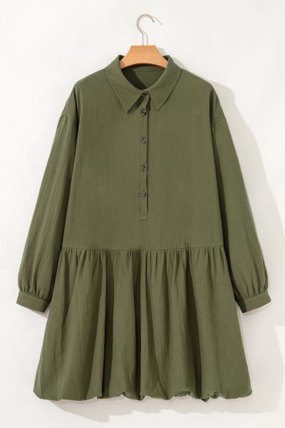 Four Leaf Clover Plus Size Collar Half Button Long Sleeve Ruffle Hem Mini Dress