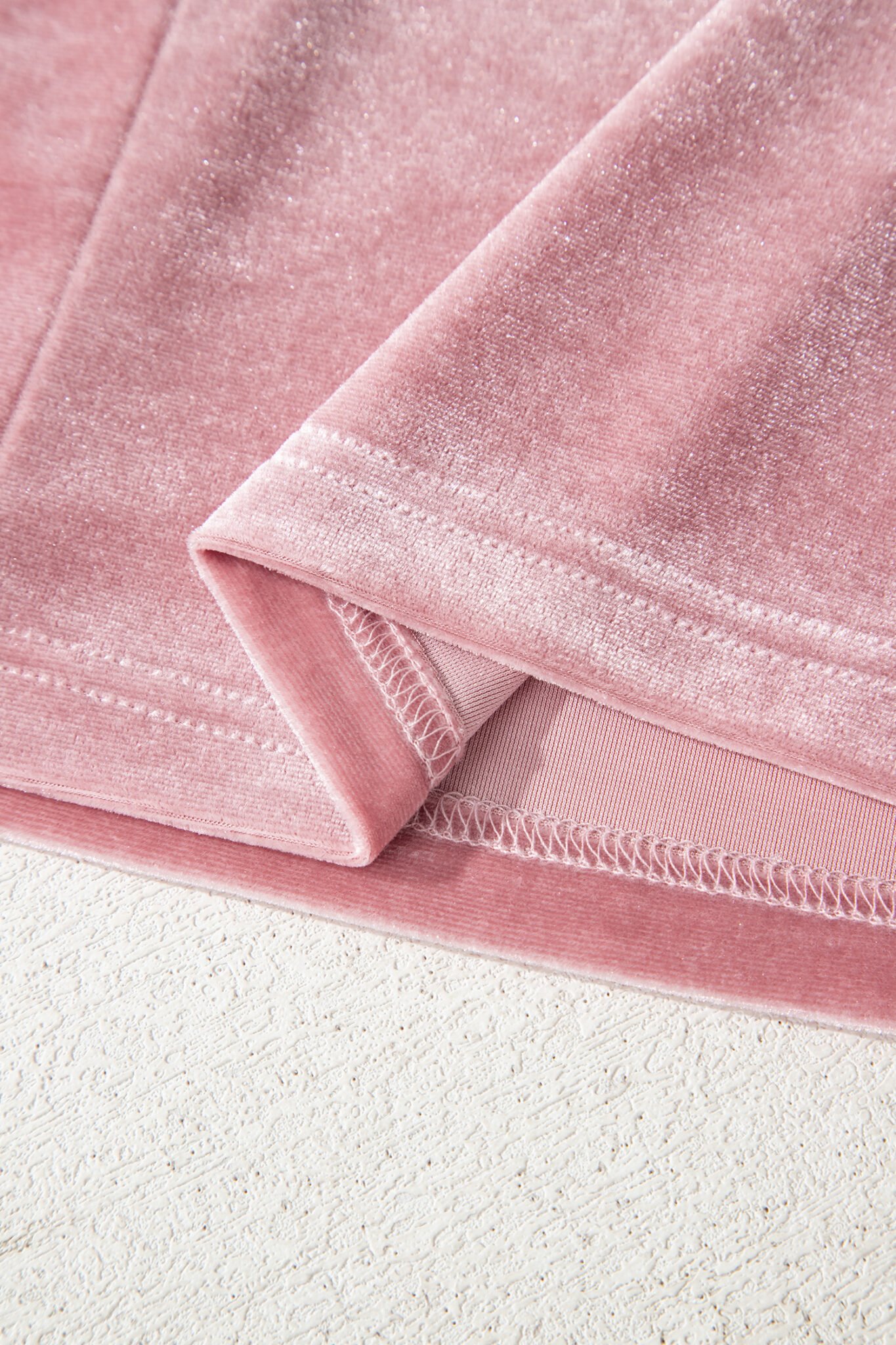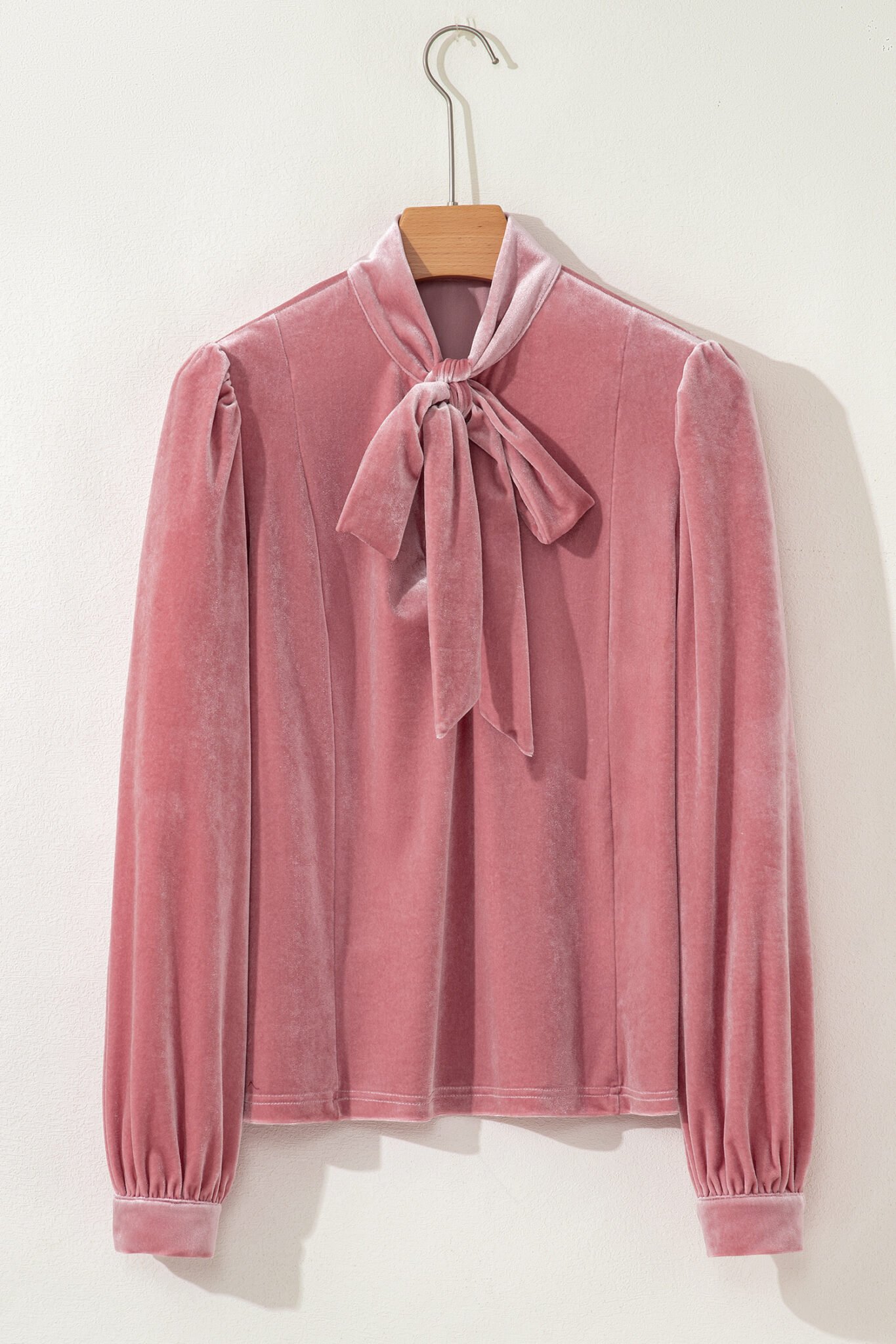 Fushia Solid Color Velvet Ribbon Bow Knot Long Sleeve Blouse