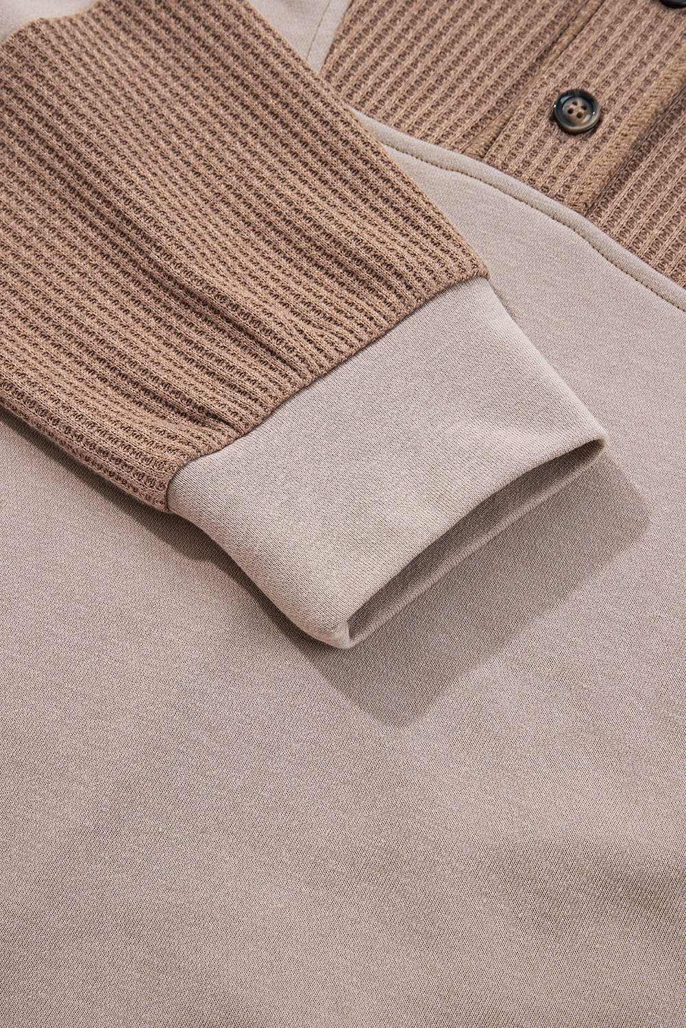 Goat Waffle Contrast Patchwork Plus Size Pocketed Hoodie