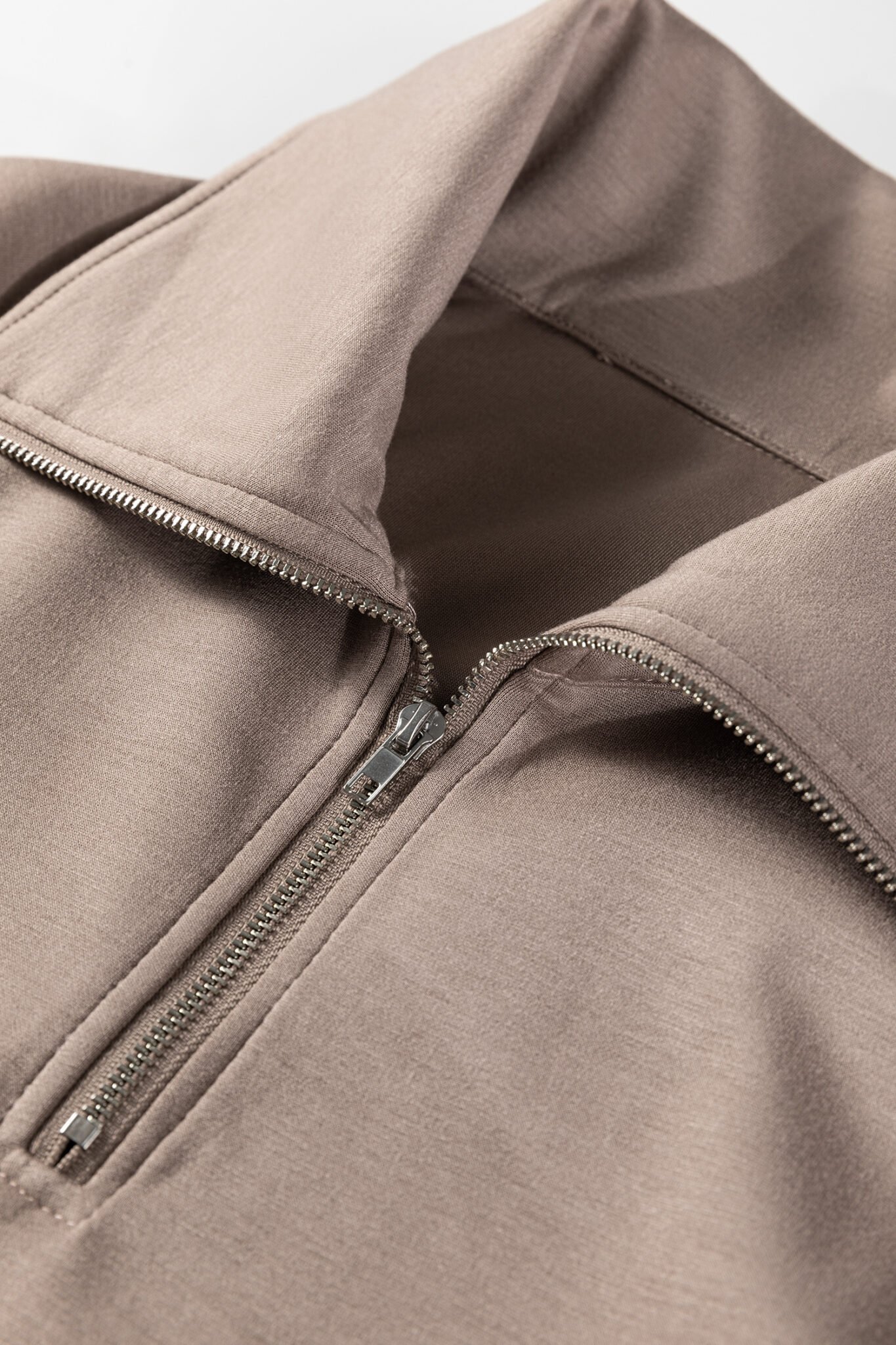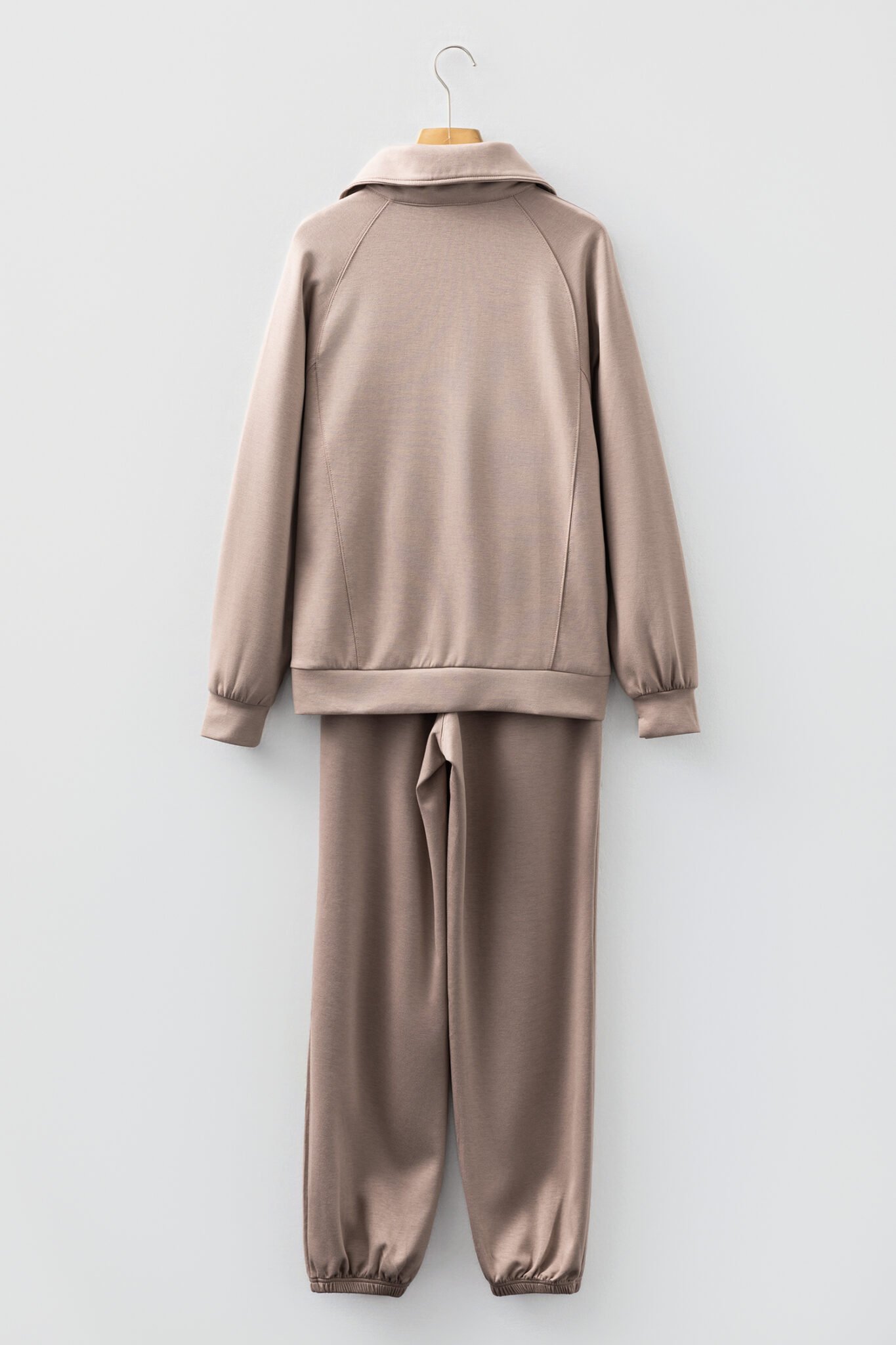 Goat Zip Collar Long Sleeve Top Drawstring Pants Set