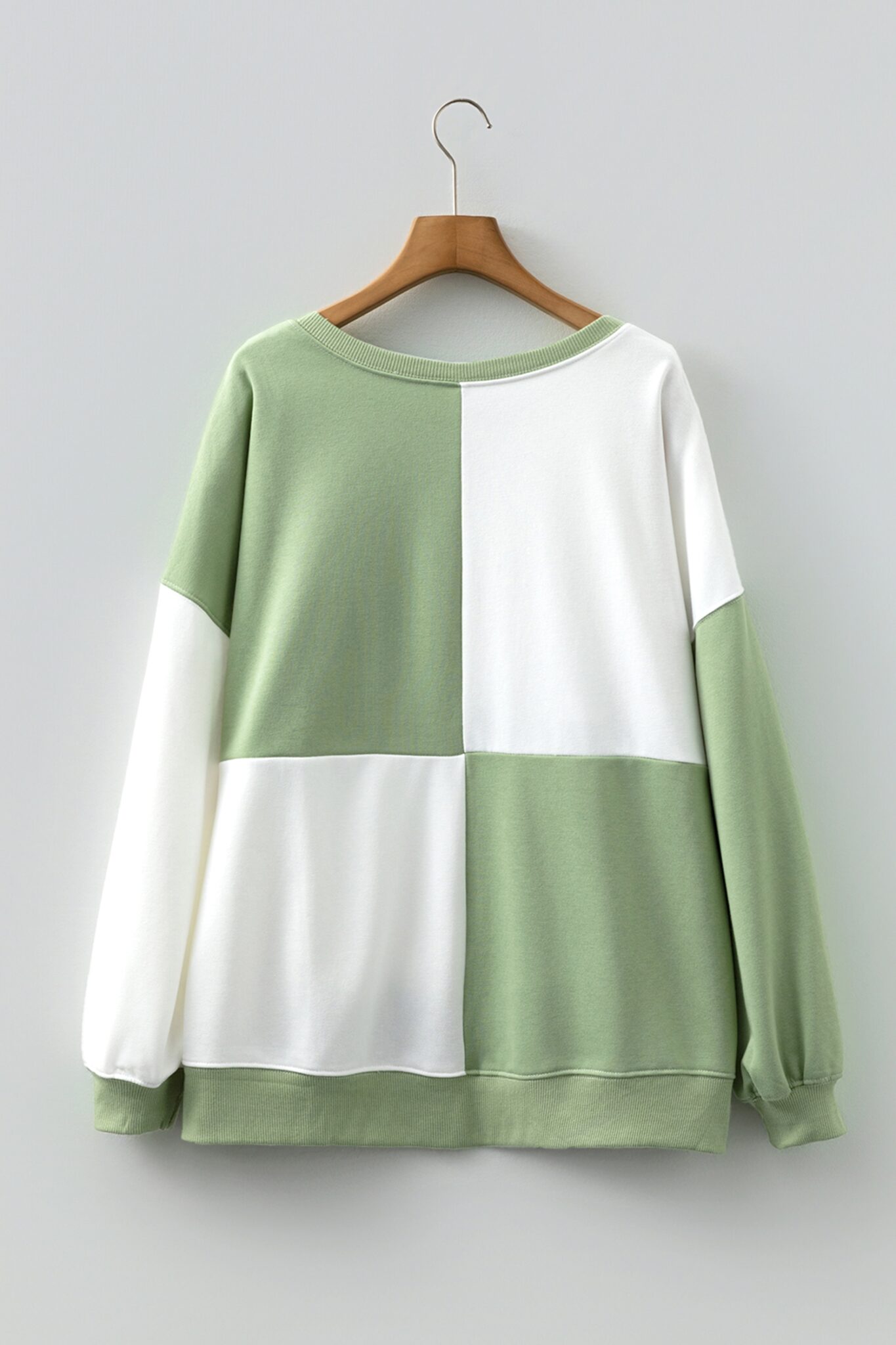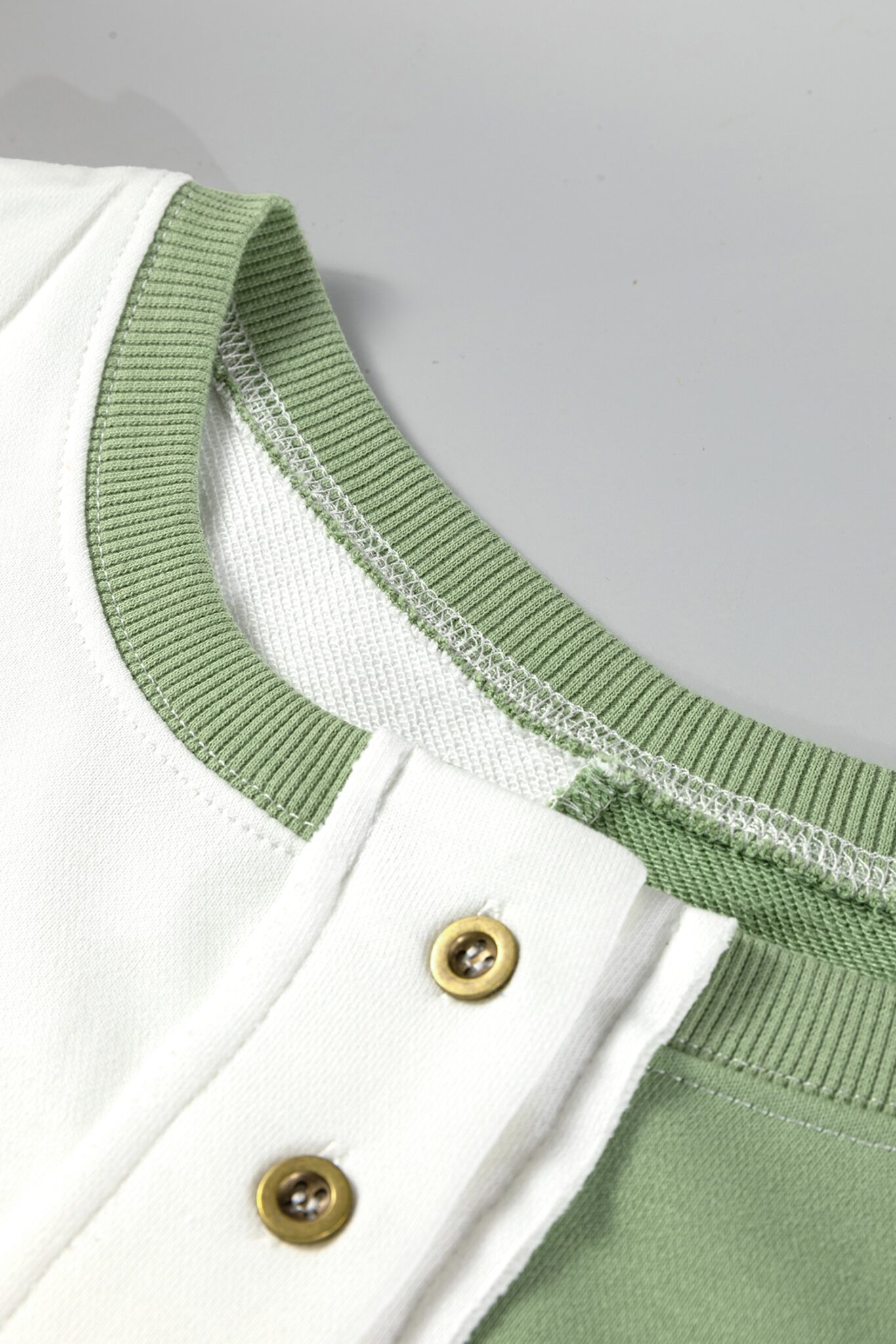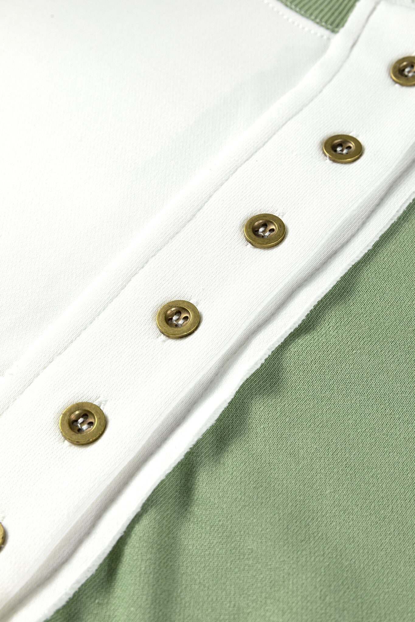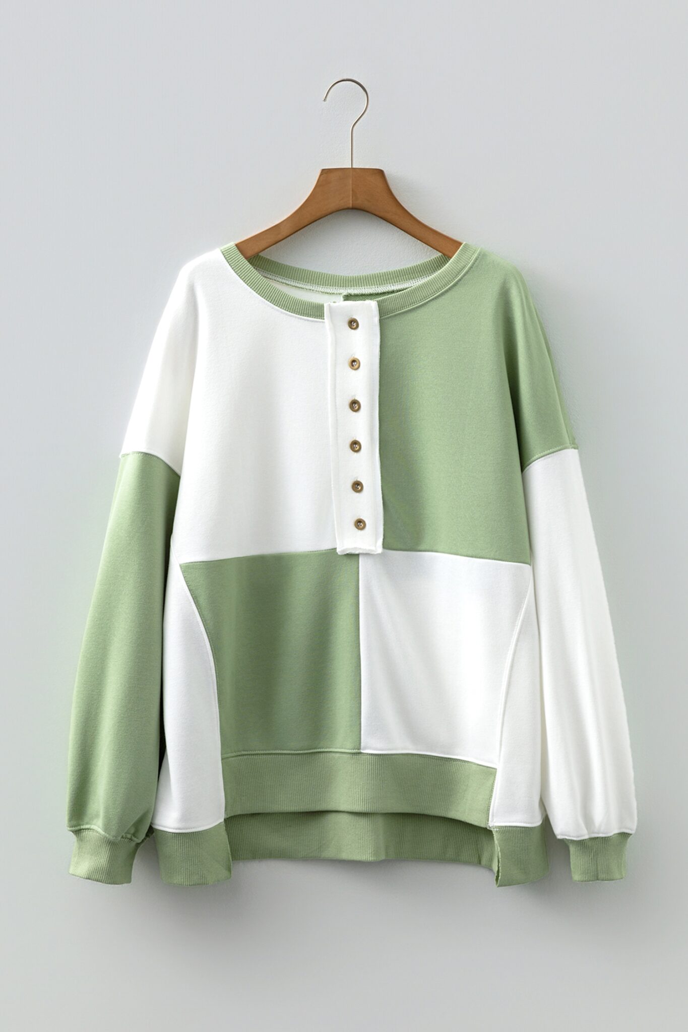 Grass Green Colorblock Henley High Low Oversize Sweatshirt