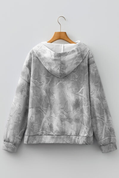 Gray Camouflage Woodland Print Oversized Sporty Hoodie