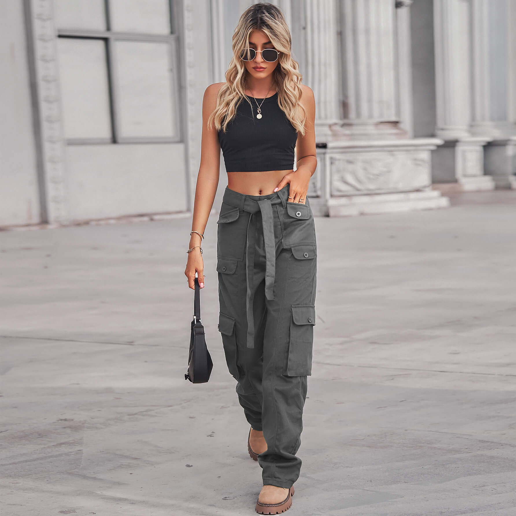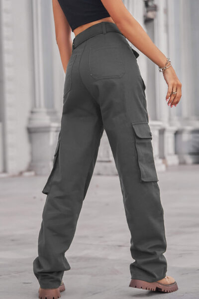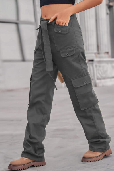 Gray Color Denim Multi Pocket Cargo Pants with Long Belt
