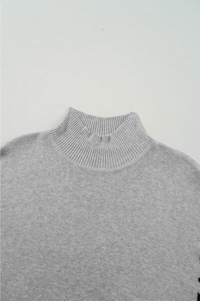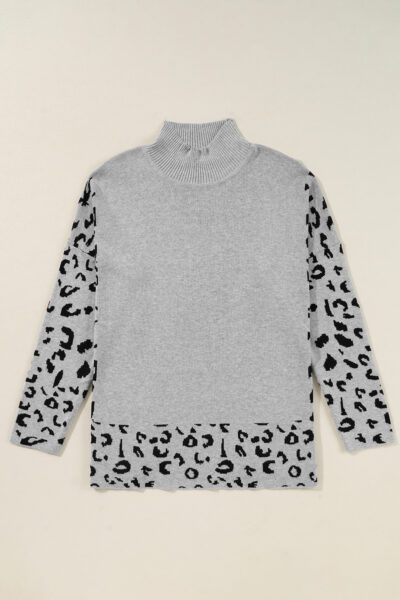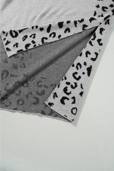 Gray Leopard High Neck Side Slit Oversized Sweater
