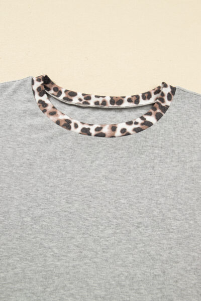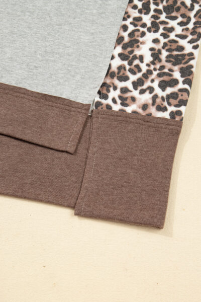 Gray Plus Size Leopard Color Block Patchwork Dolman Sweatshirt