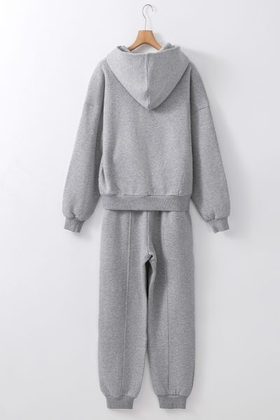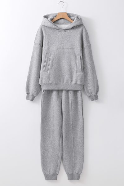 Gray Solid Exposed Seams Hoodie and Joggers Activewear Set