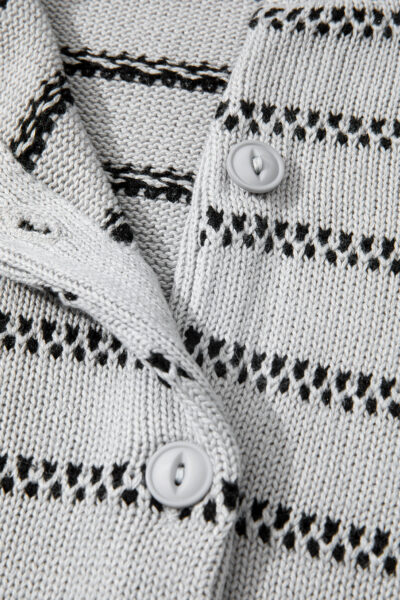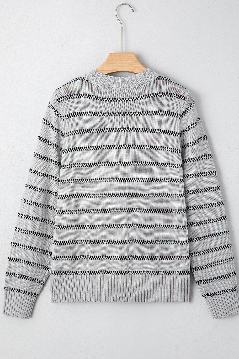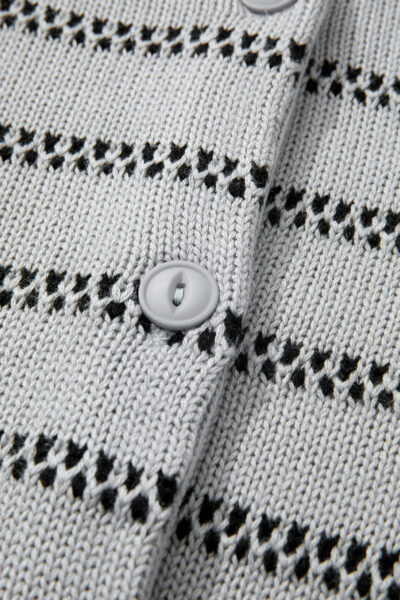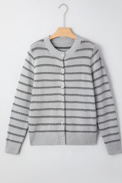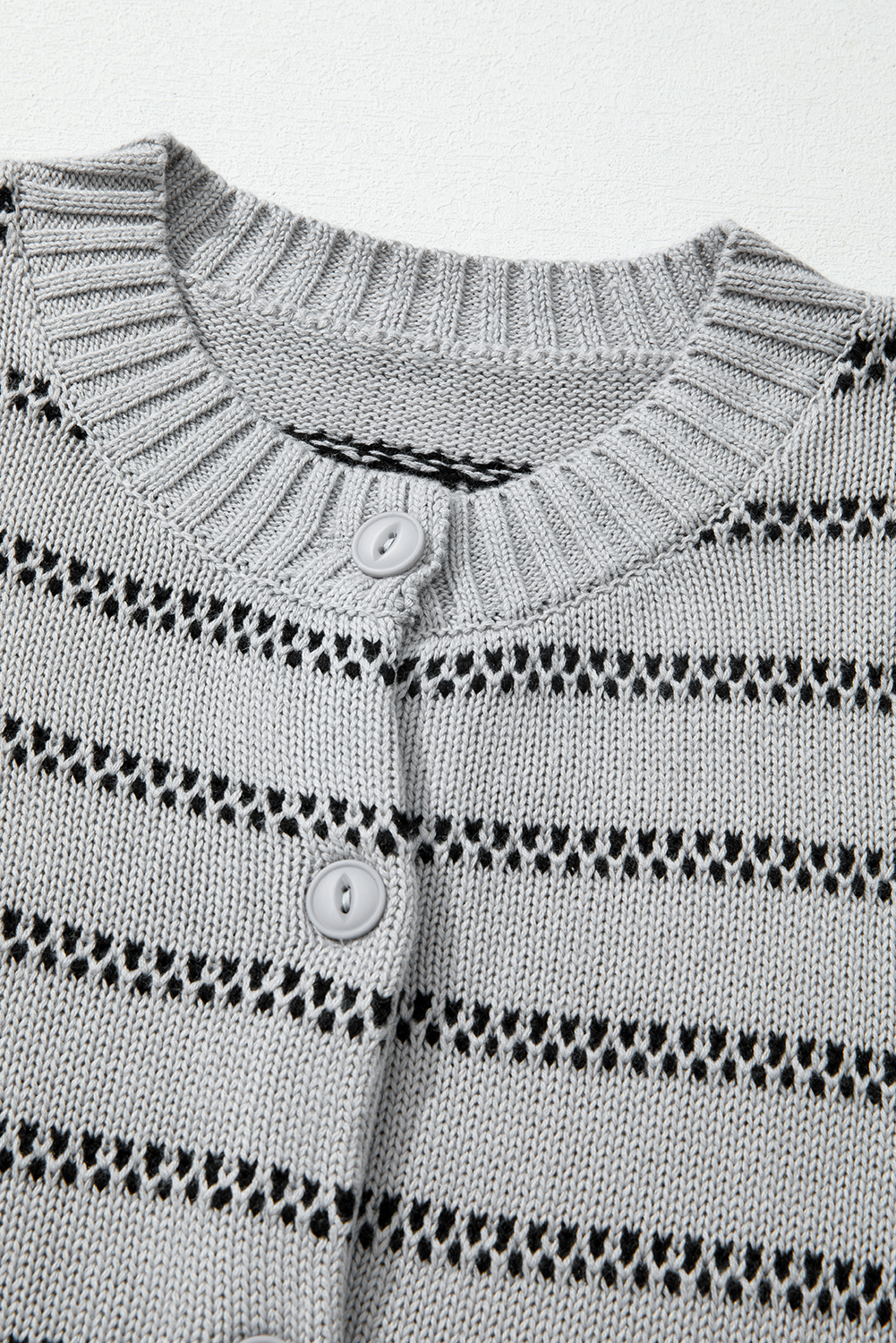 Gray Stripe Button Front Ribbed Trim Short Cardigan