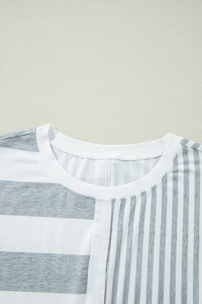 Gray Stripe Mixed Printed Short Sleeve Shift Mini T Shirt Dress