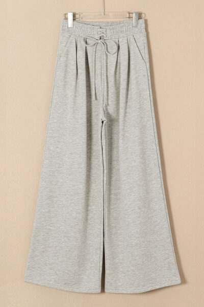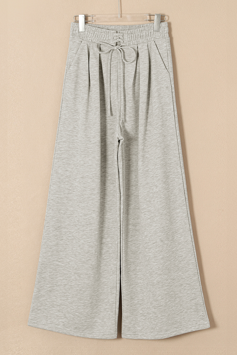 Gray Tied Elastic High Waist Pleated Detail Solid Sweatpants
