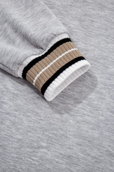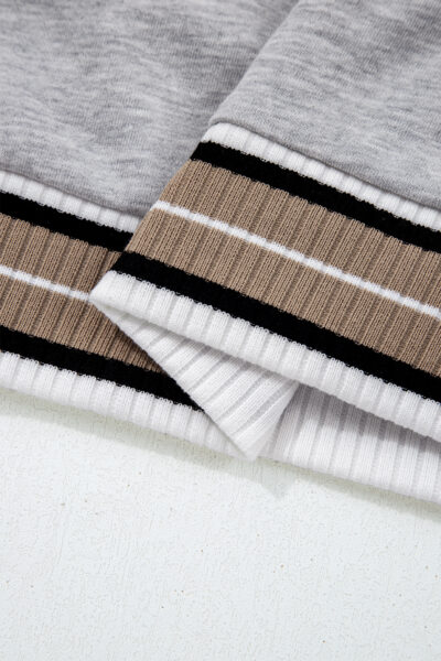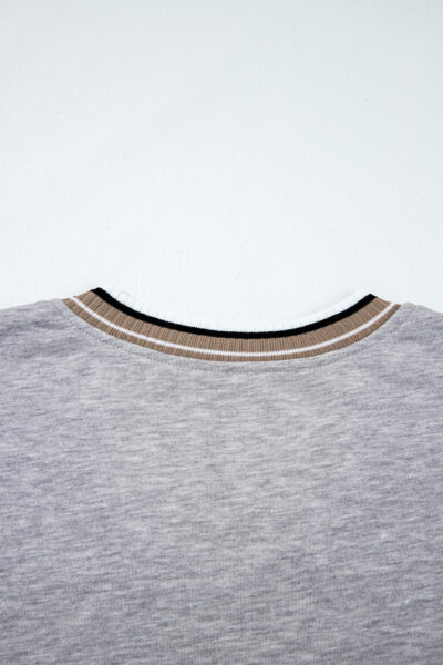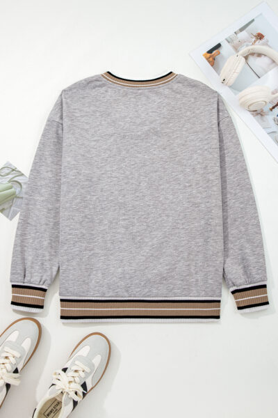Gray Varsity Contrast Striped Trim V Neck Sweatshirt