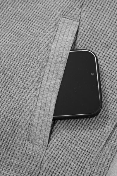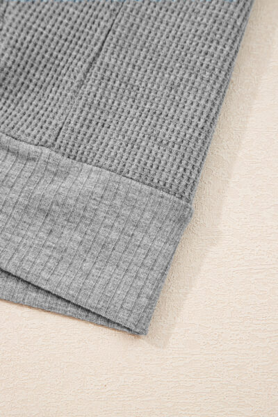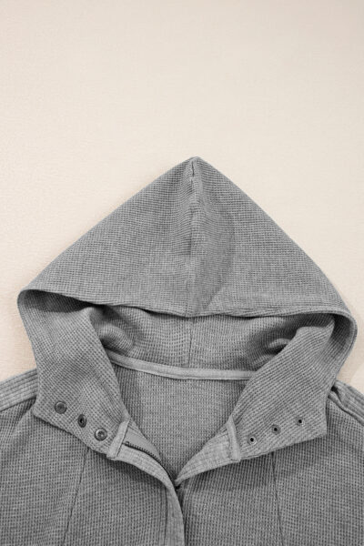 Gray Waffle Splicing Zip Up Front Button Hooded Jacket