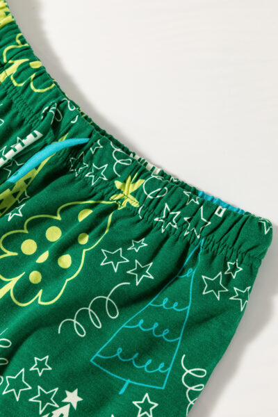 Green Christmas Tree Print V Neck Tee and Pants Lounge Set