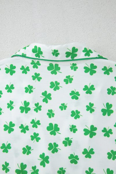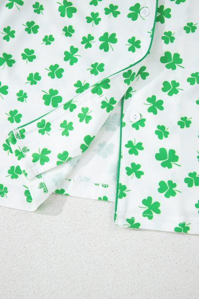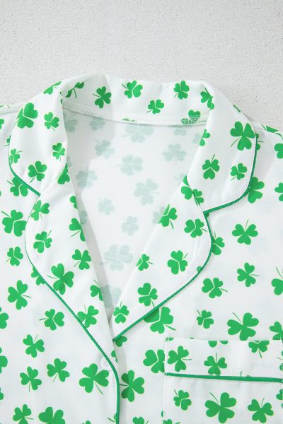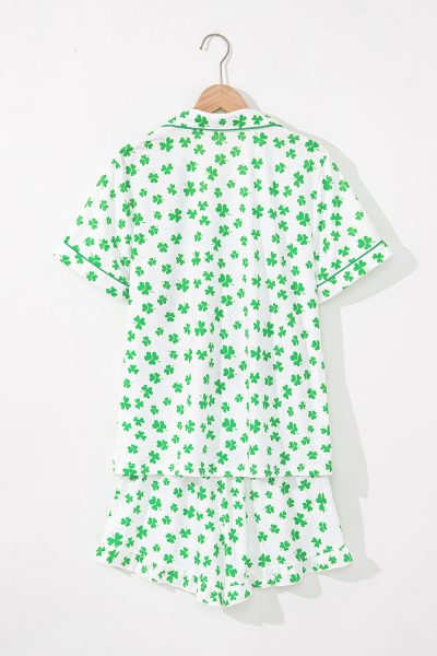 Green Clover Printed Short Sleeve and Ruffled Shorts Pajama Set