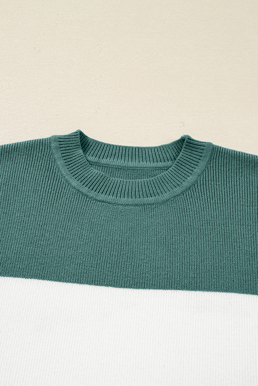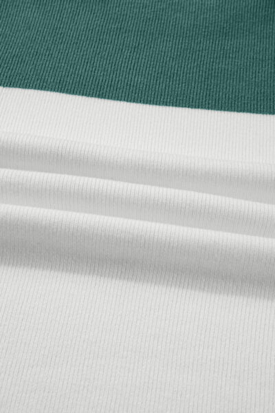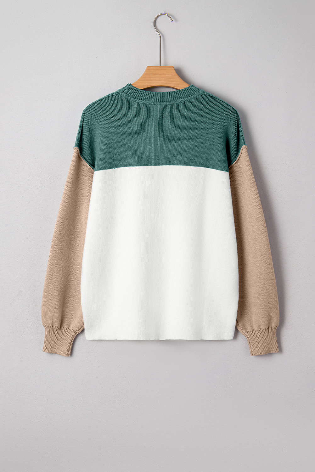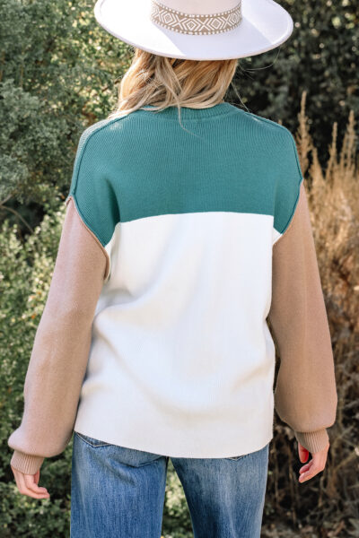 Green Color Block Plain Ribbed Knit Baggy Sweater