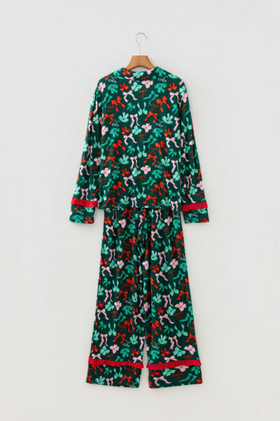 Green Festive Bow Print 2pcs Pajama Pant Set