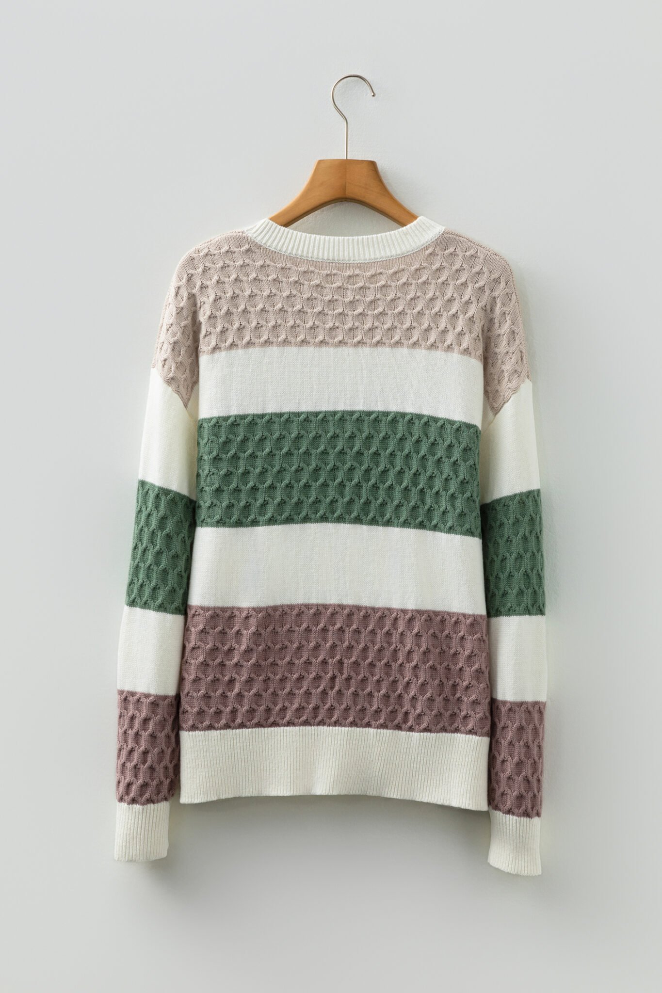 Green Mixed Texture Knit Striped Color Block Loose Sweater