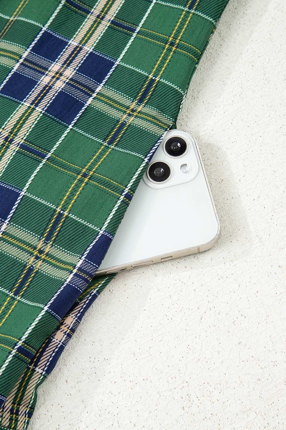 Green Plaid Print Frilly Collar Long Sleeve Shift Mini Dress