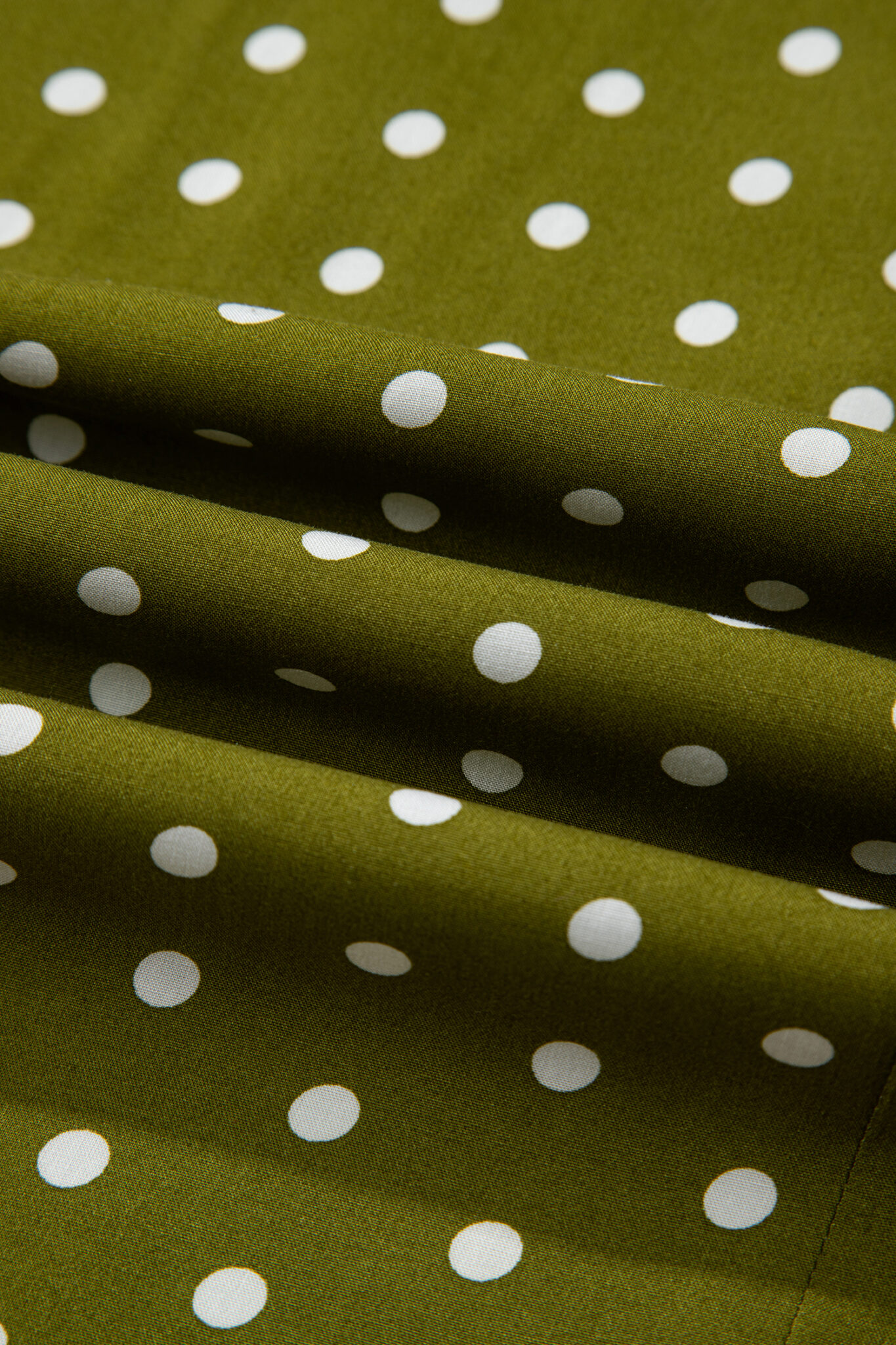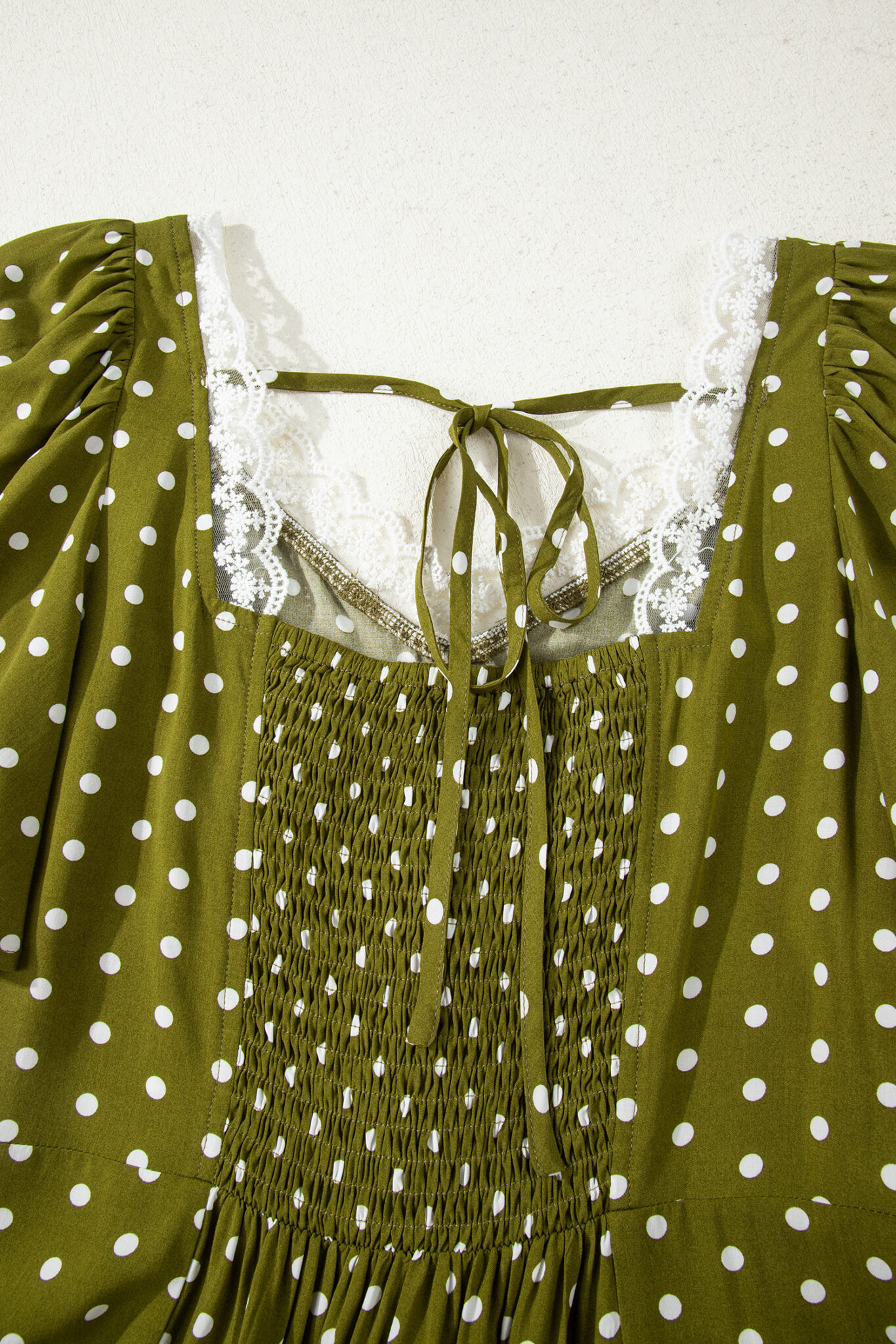 Green Polka Dot Print Lacy Neckline Smocked High Waist Maxi Dress