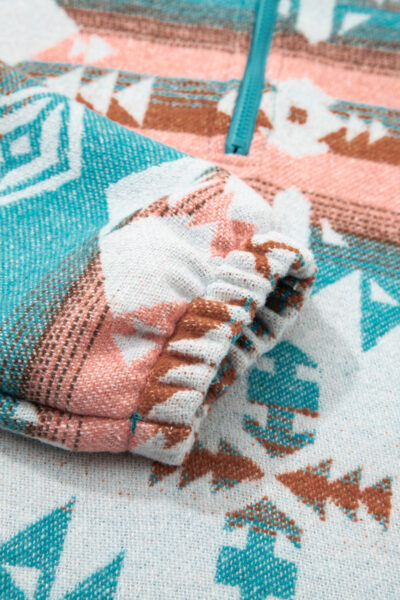 Green Quarter Zip Elastic Cuffs Aztec Sweatshirt