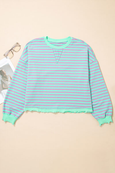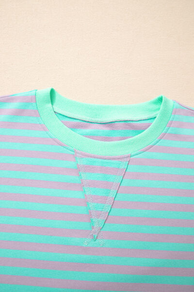Green Stripe Exposed Seam Contrast Ribbed Trim Oversize Sweatshirt
