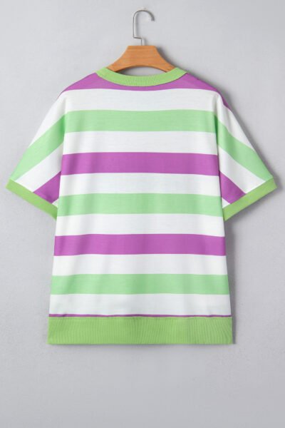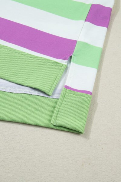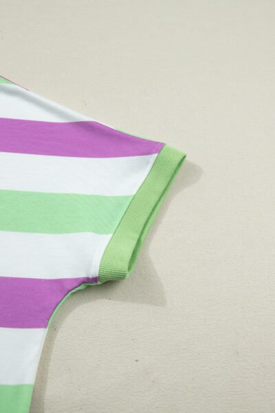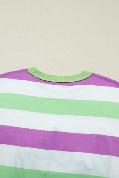 Green Stripe Lucky Clover Embroidered Graphic Dolman Loose Tee