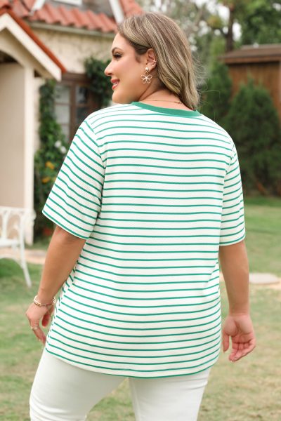 Green Stripe Plus Size St Patricks Day Round Neck T Shirt