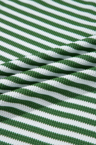 Green Stripe Thermal Knit Drop Shoulder Casual Top