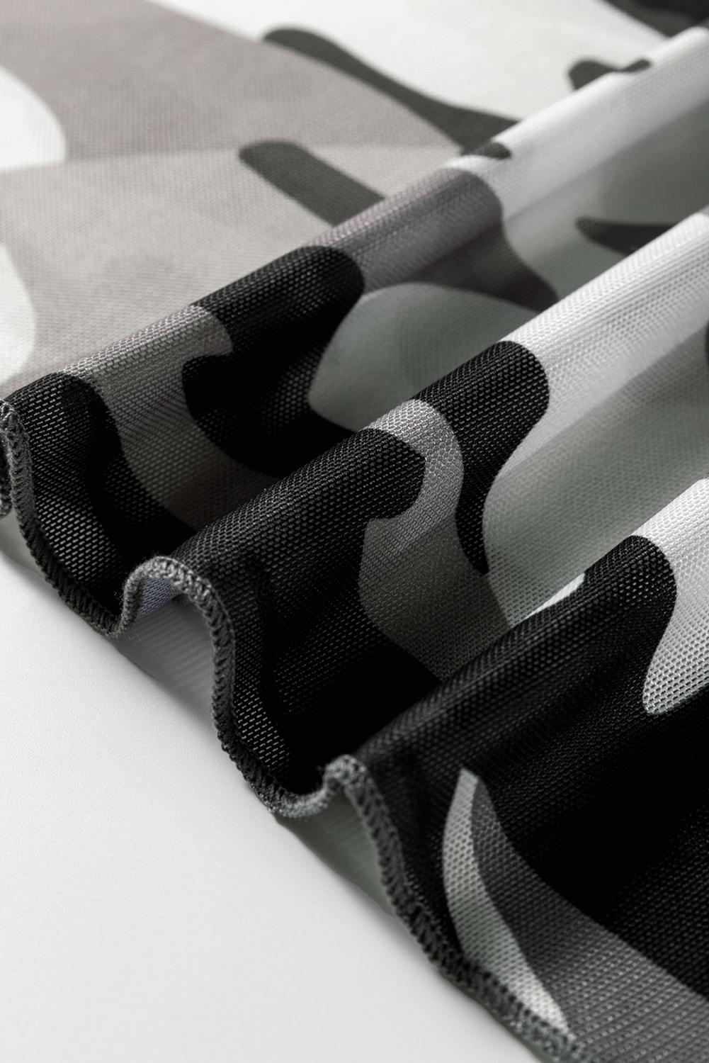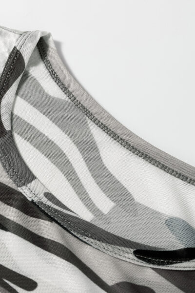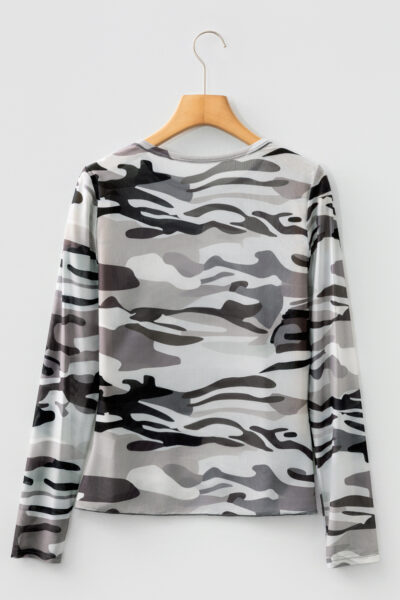 Green Western Fashion Camouflage Print Mesh Long Sleeve Top