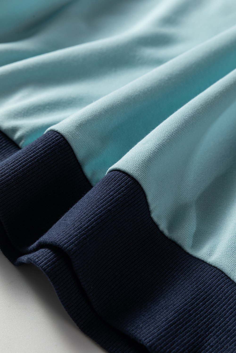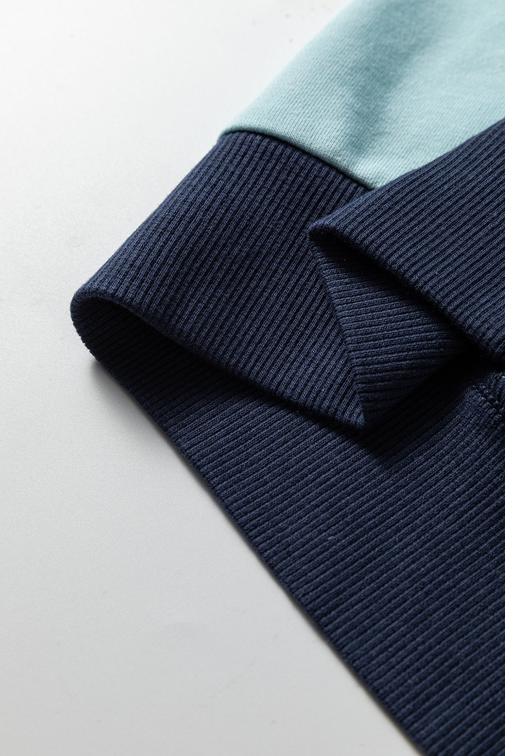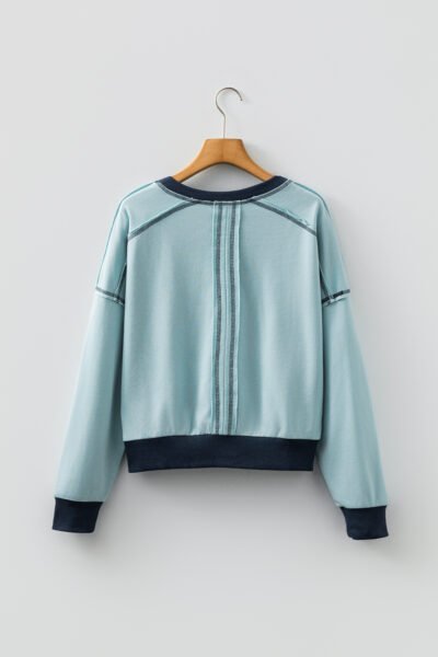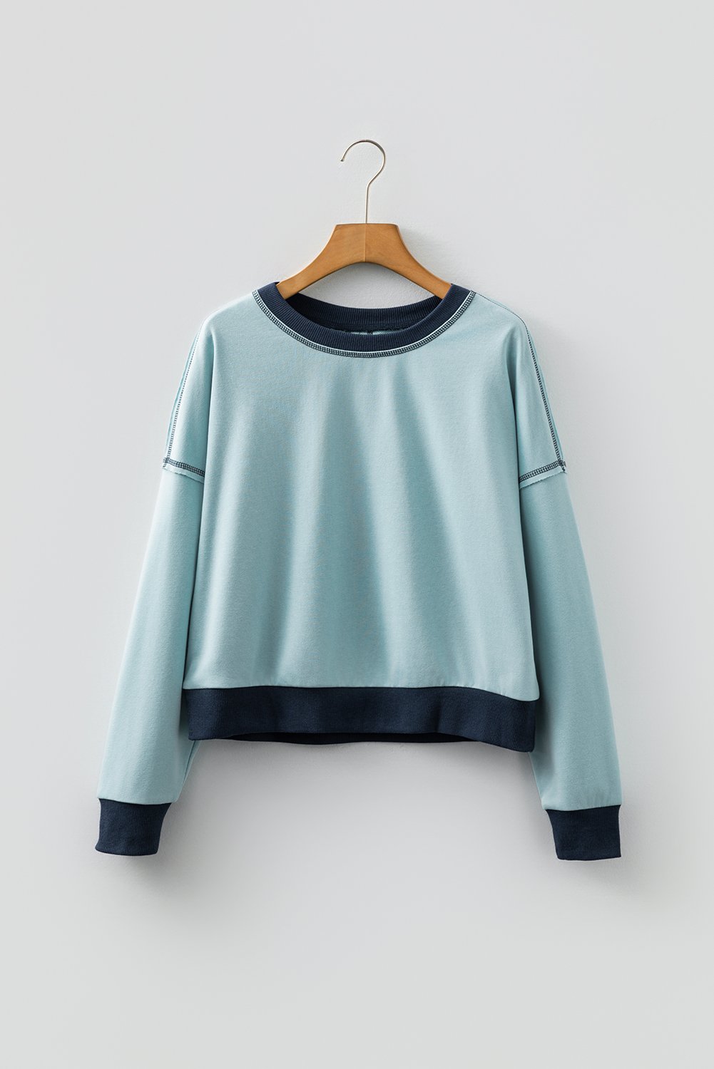 Iceland Blue Contrast Edge Colorblock Patchwork Crop Sweatshirt