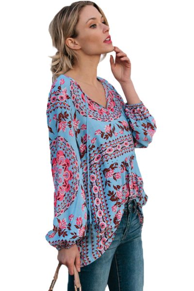 Ingrid Women’s V Neck Long Sleeve Loose Blouses Sky Blue