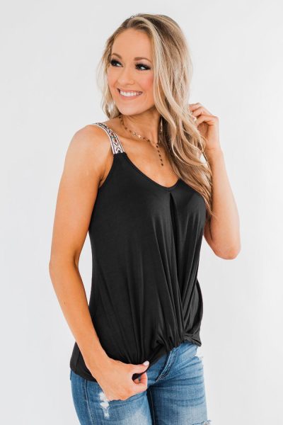 Ionia Women’s Scoop Neck Strappy Sleeveless Twist Tank Tops Black