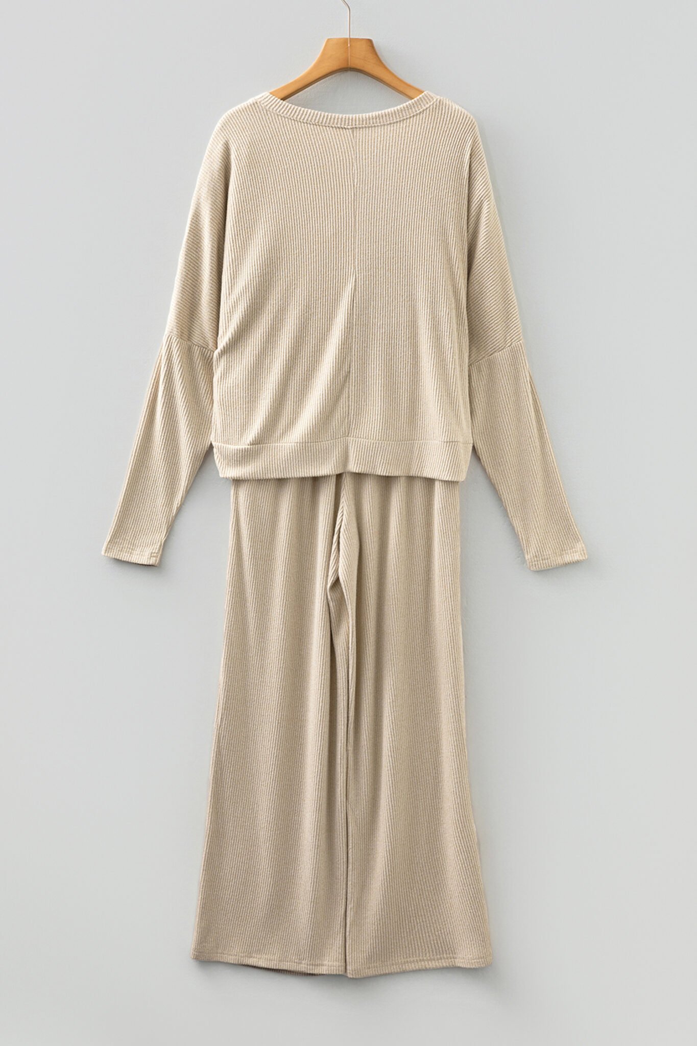 Jet Stream 3D Ribbed V Neck Pullover Drawstring Pants 2 Piece Lounge Set