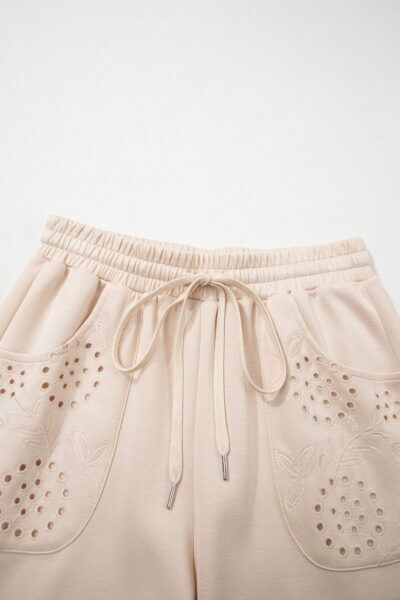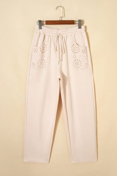 Jet Stream Embroidered Patched Pockets Drawstring Pants