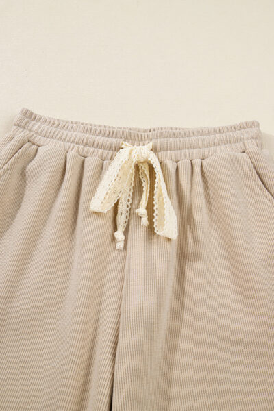 Jet Stream Lace Drawstring Pullover Hoodie and High Waist Pants Corduroy Suit