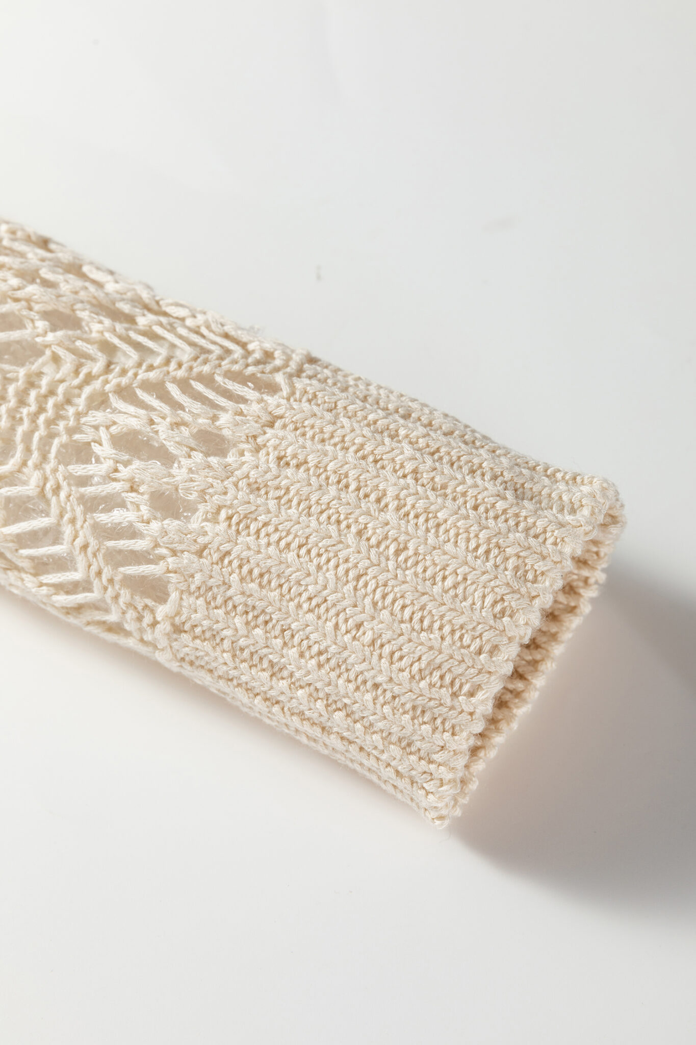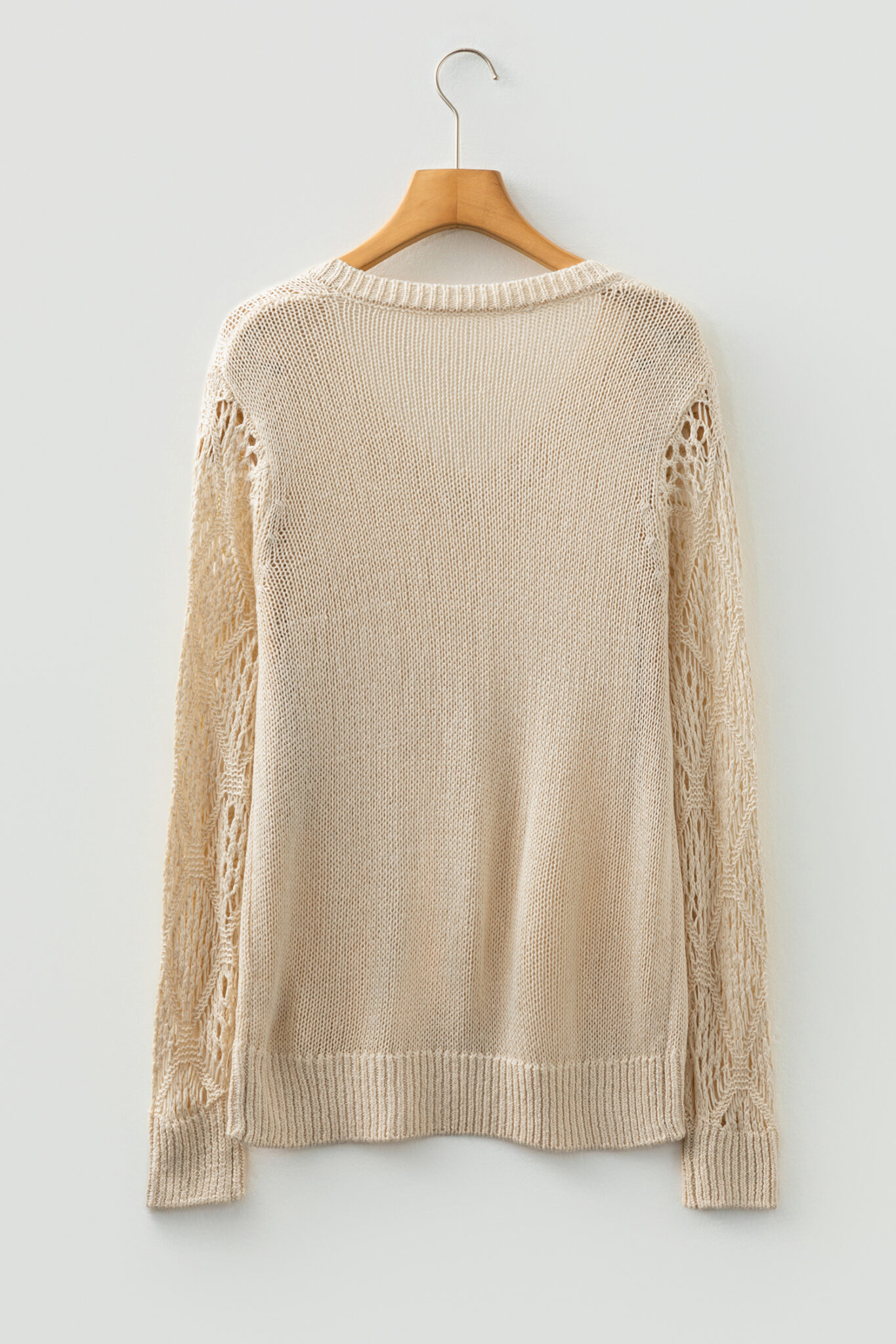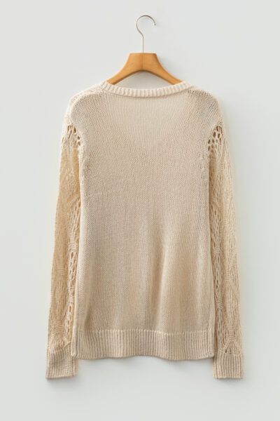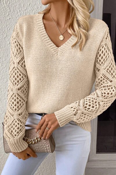 Jet Stream Solid V Neck Pointelle Knit Sleeve Patchwork Sweater