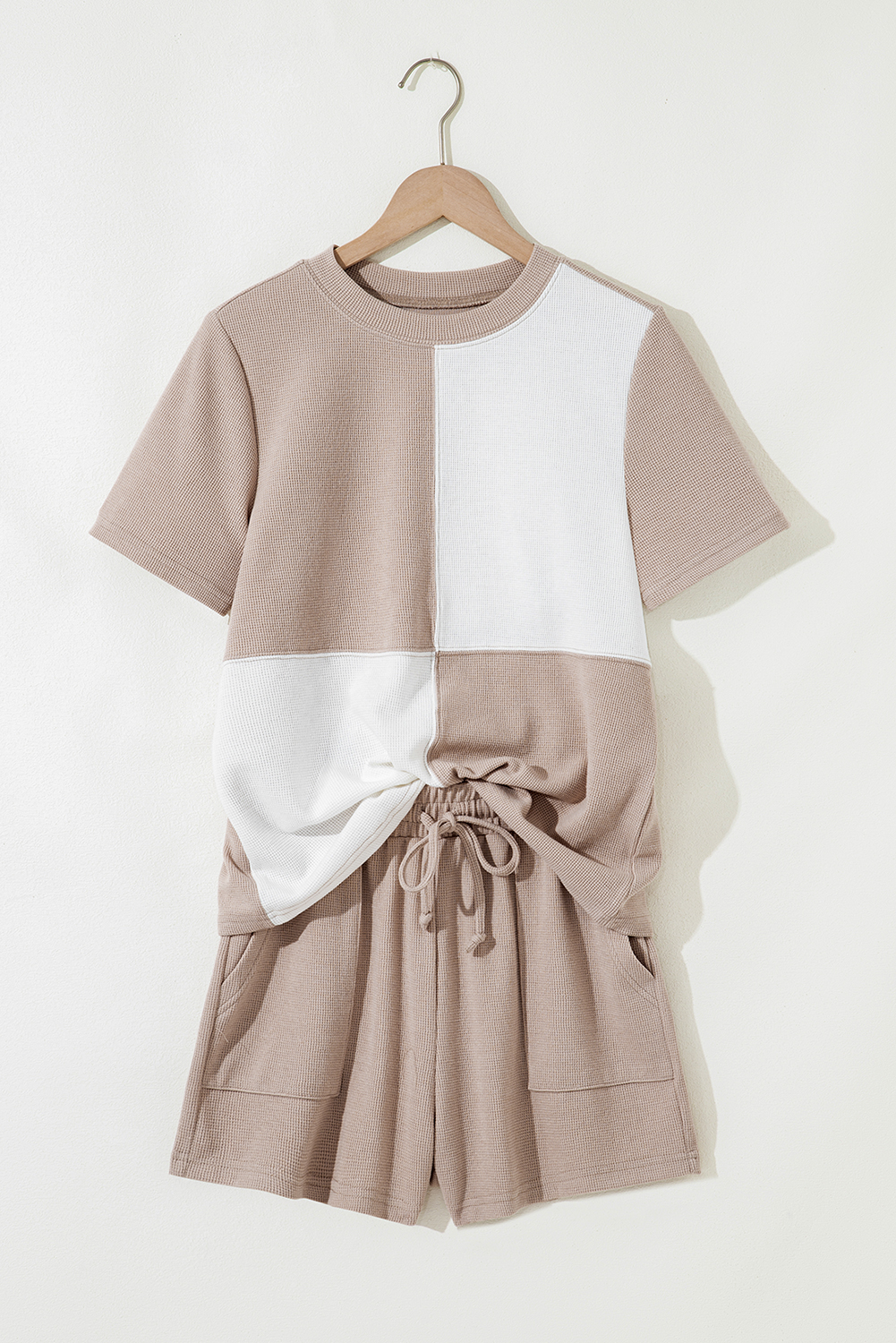 Jet Stream Textured Colorblock Patchwork Tee and Shorts Set