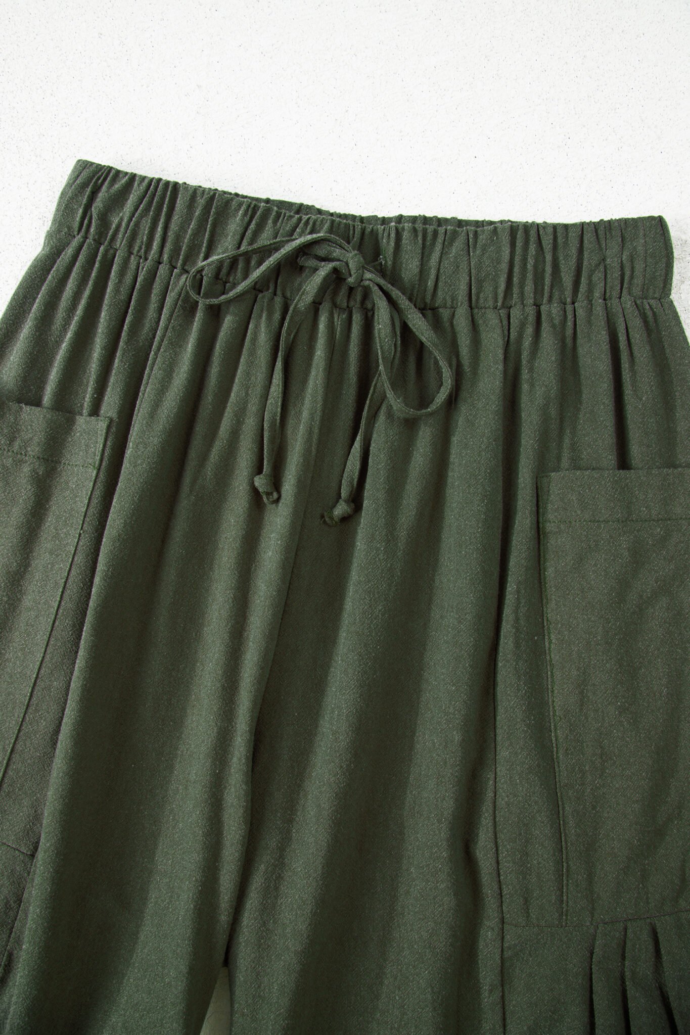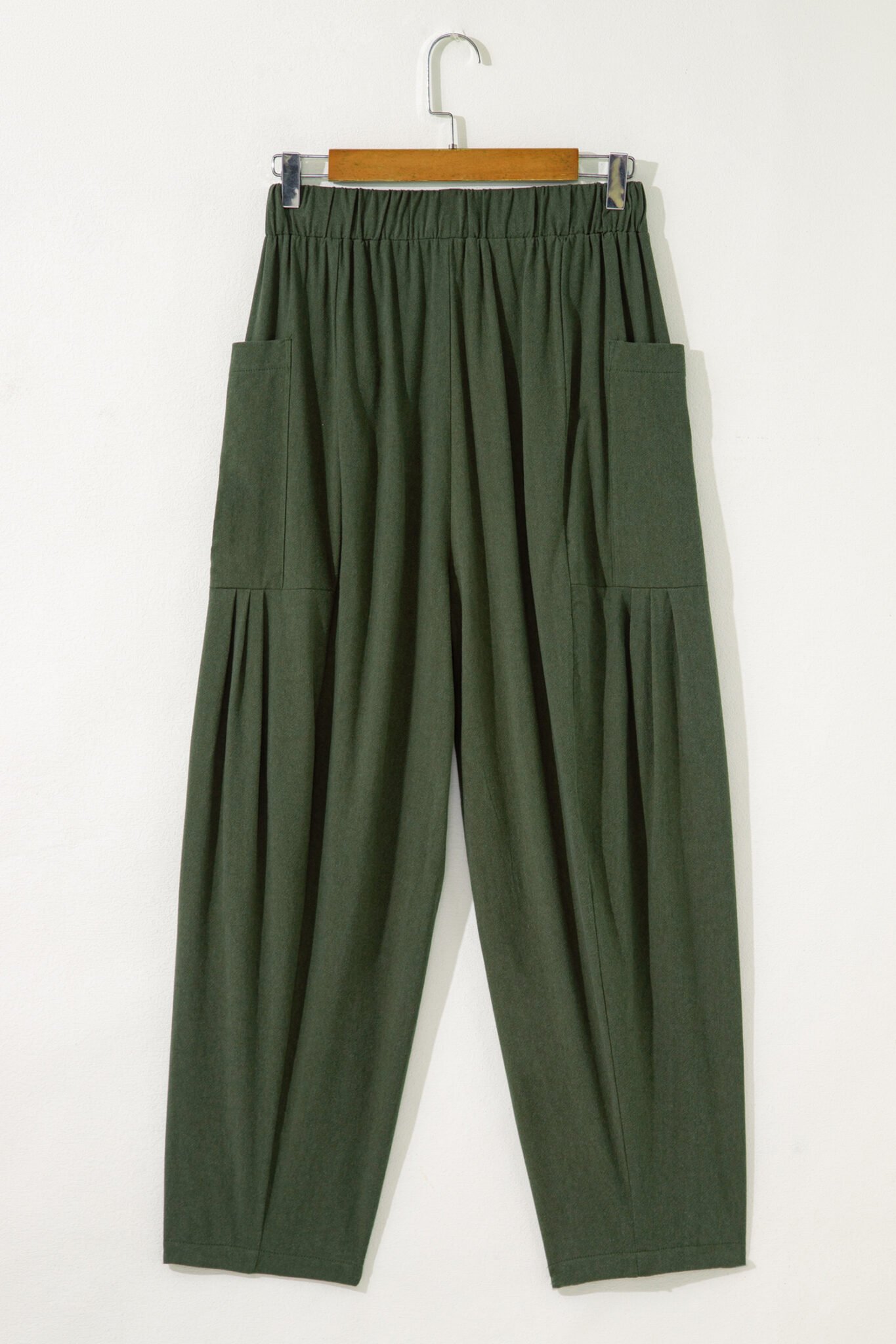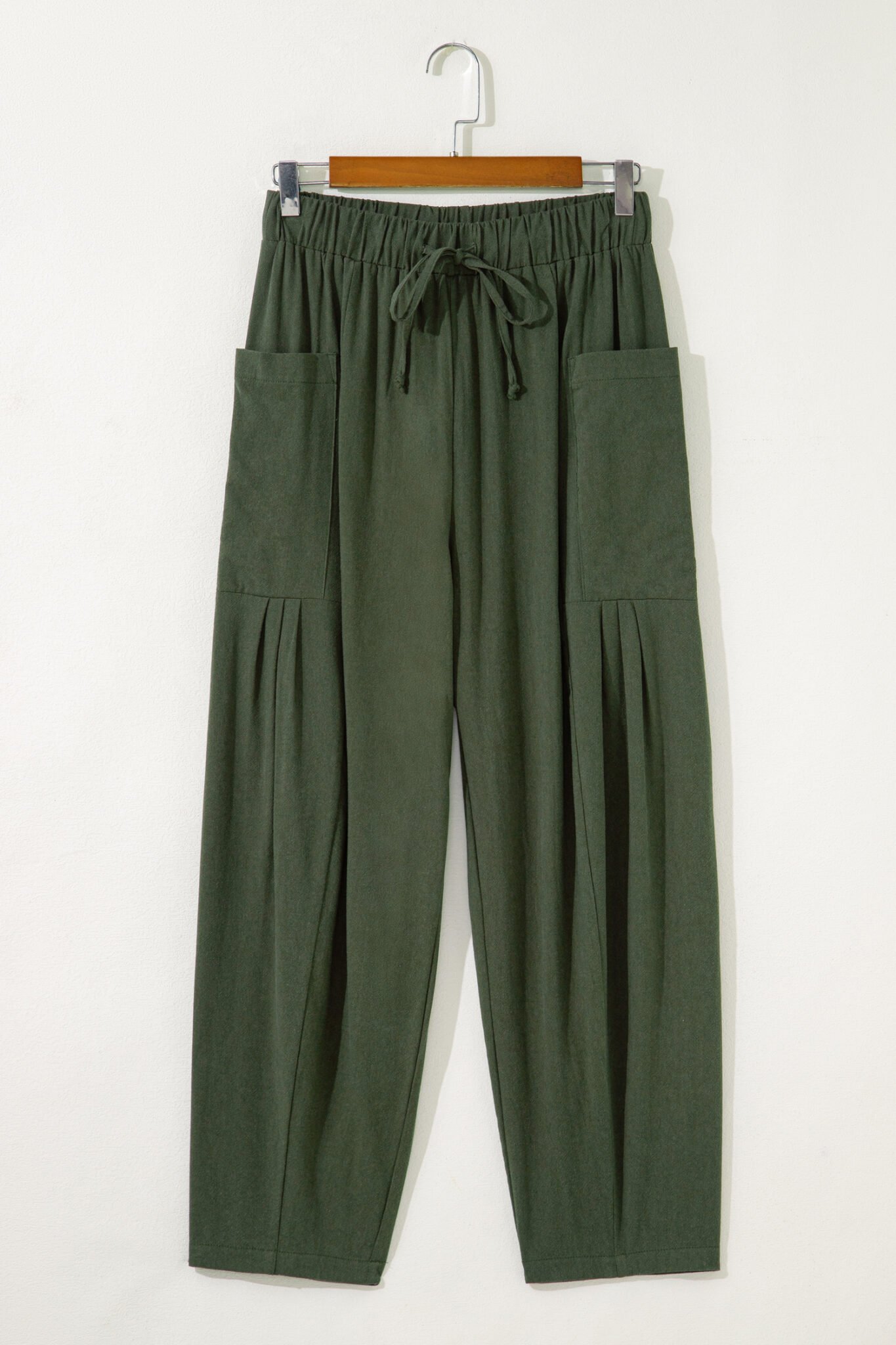 Jungle Green Drawstring Elastic Waist Patch Pocket Barrel Leg Casual Pants