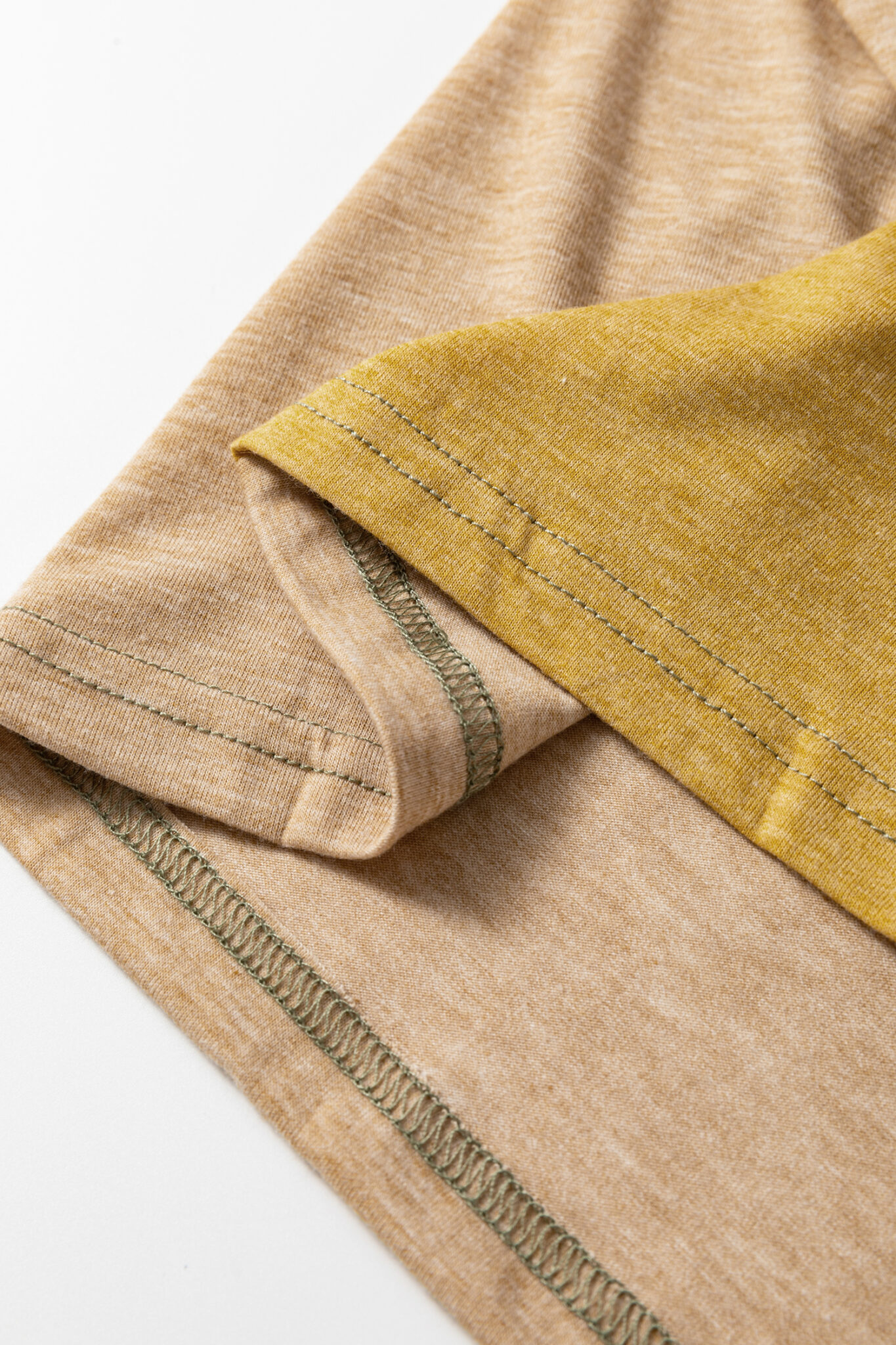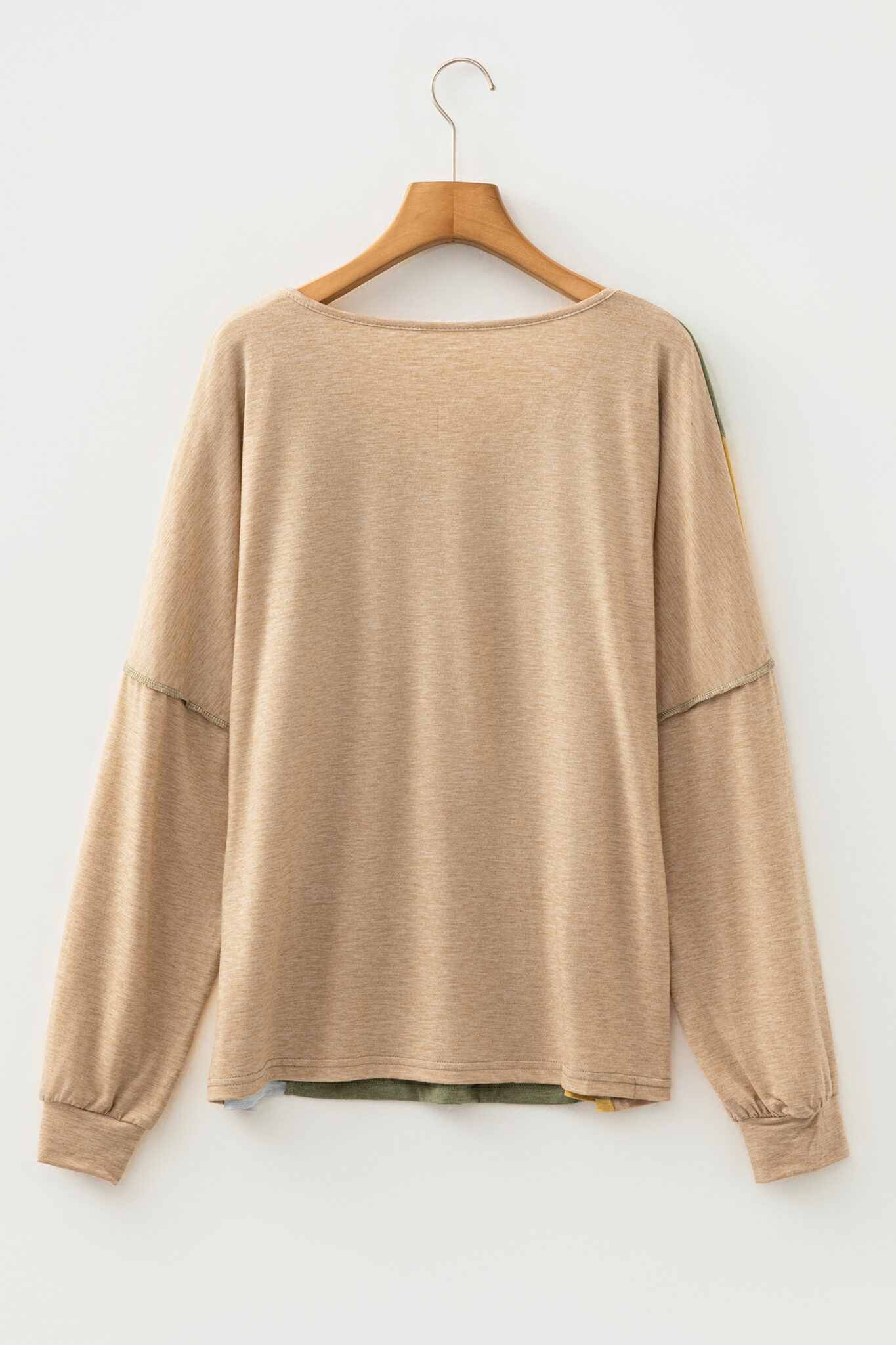 Jungle Green Exposed Stitching Colorblock V Neck Long Sleeve Top