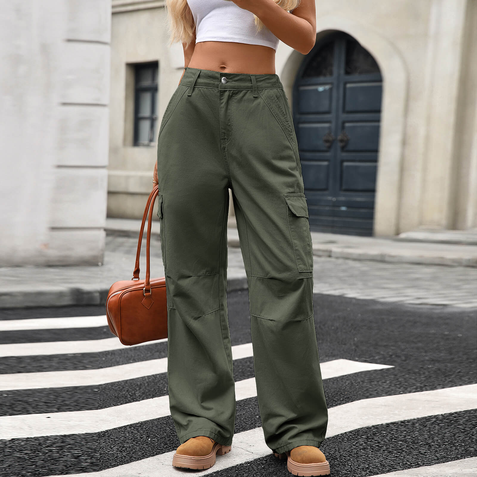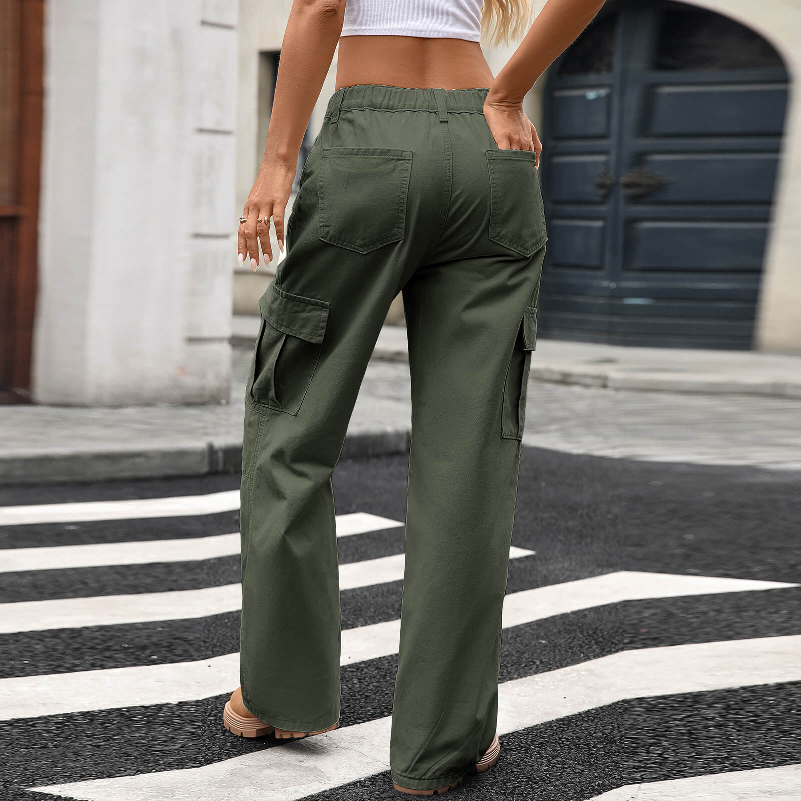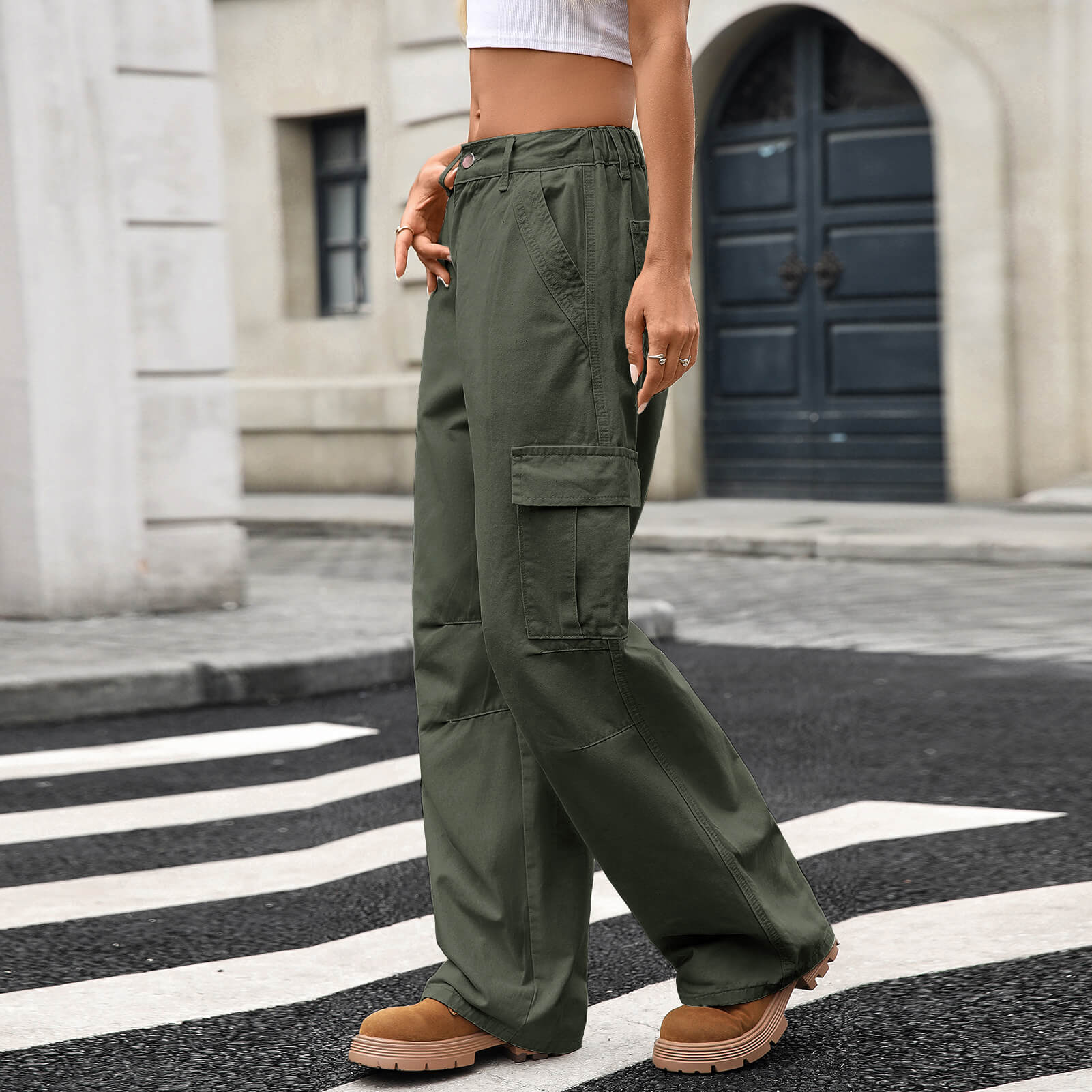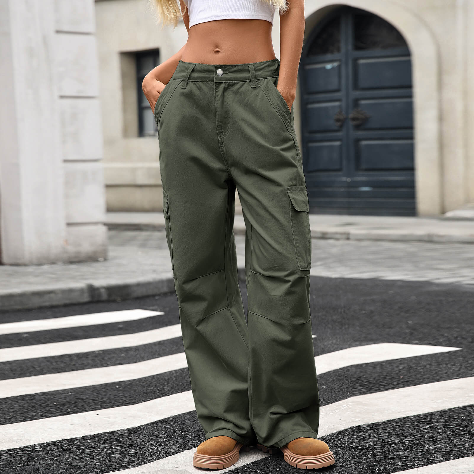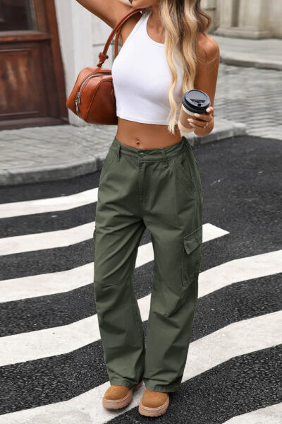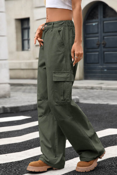 Jungle Green Loose Fit Denim Cargo Pants with Large Side Pockets