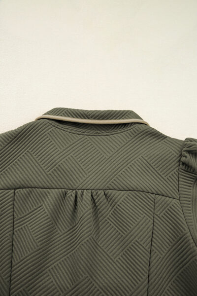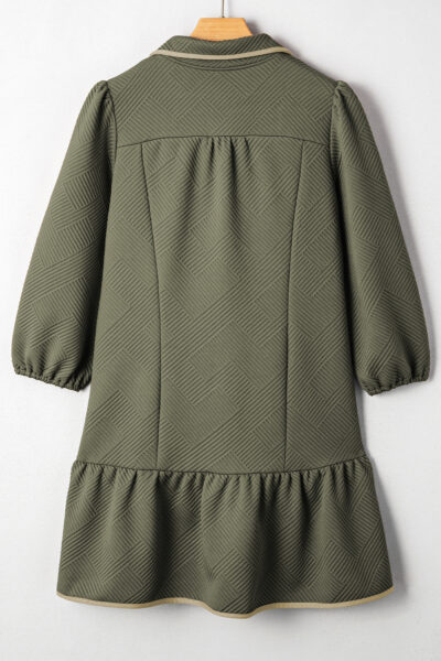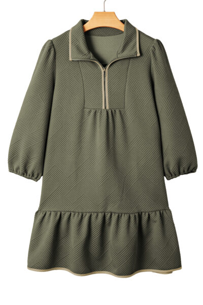 Jungle Green Quarter Zip Collar Bracelet Sleeve Textured Mini Dress