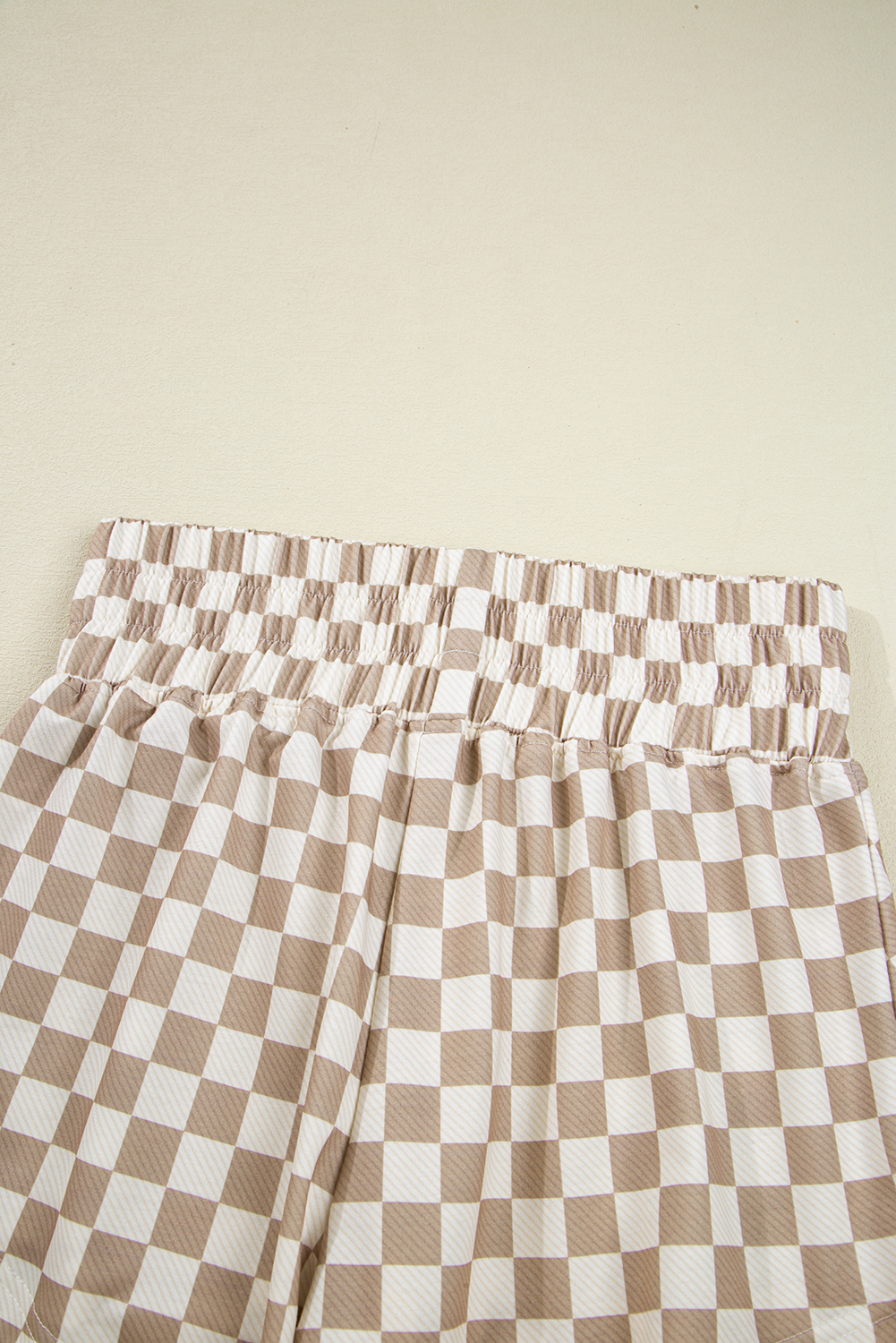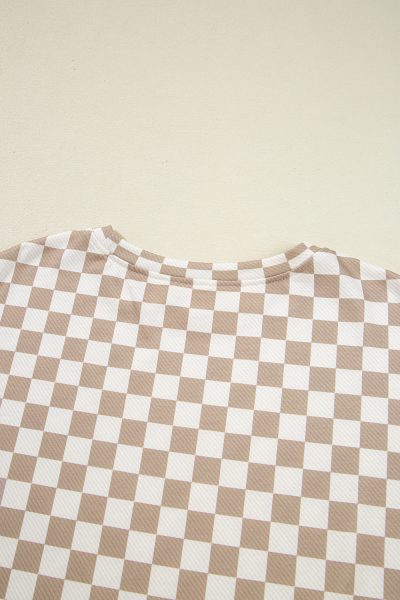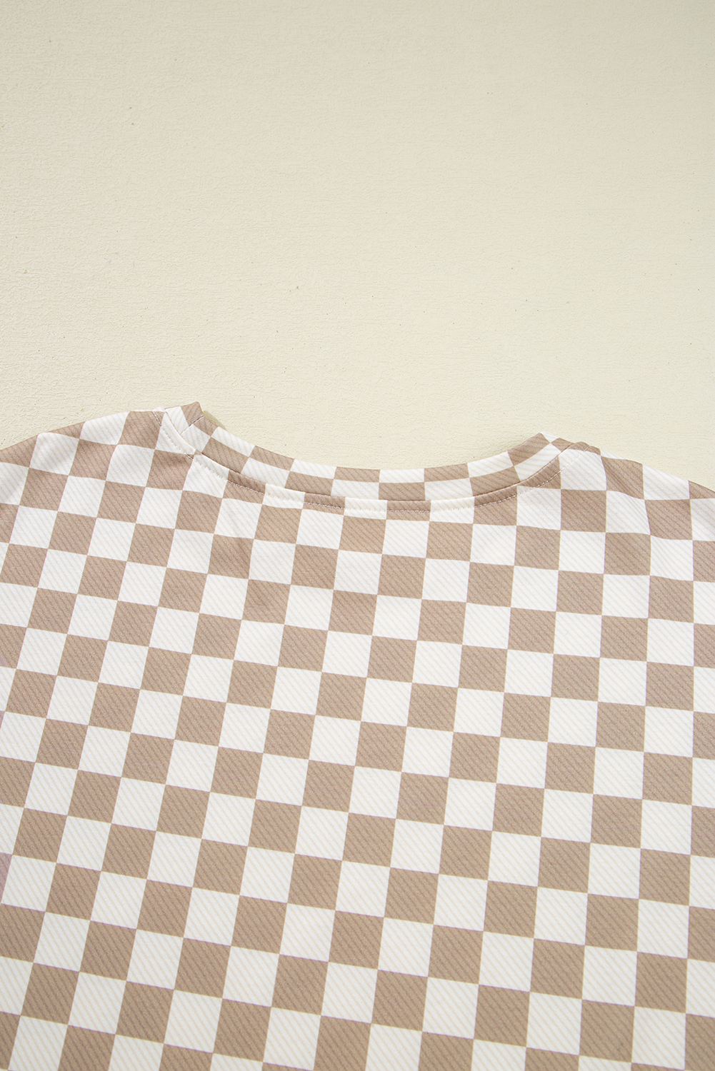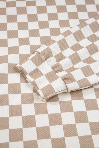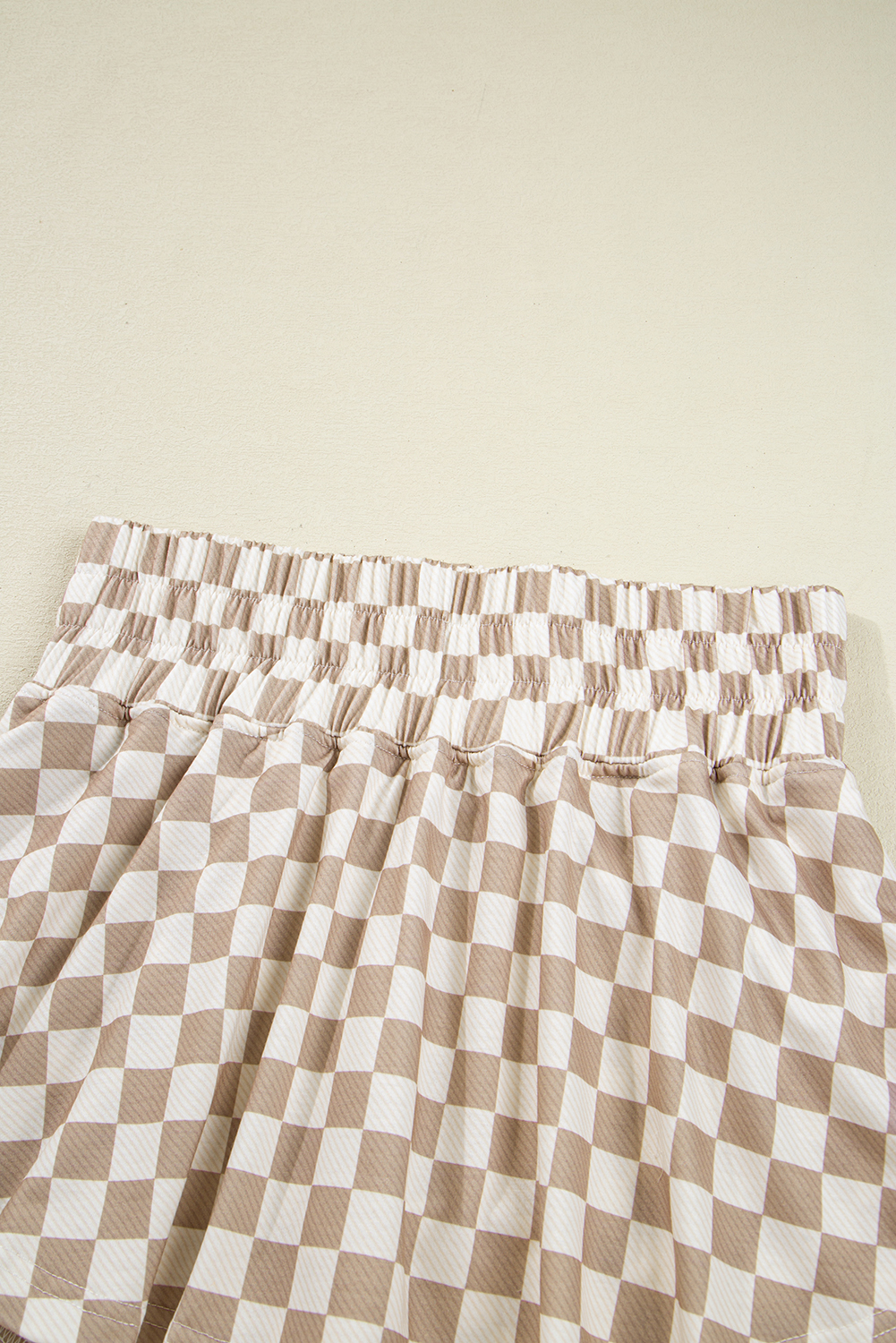 Khaki Checkered Long Sleeve Crop Top High Waist Skort 2pcs Set