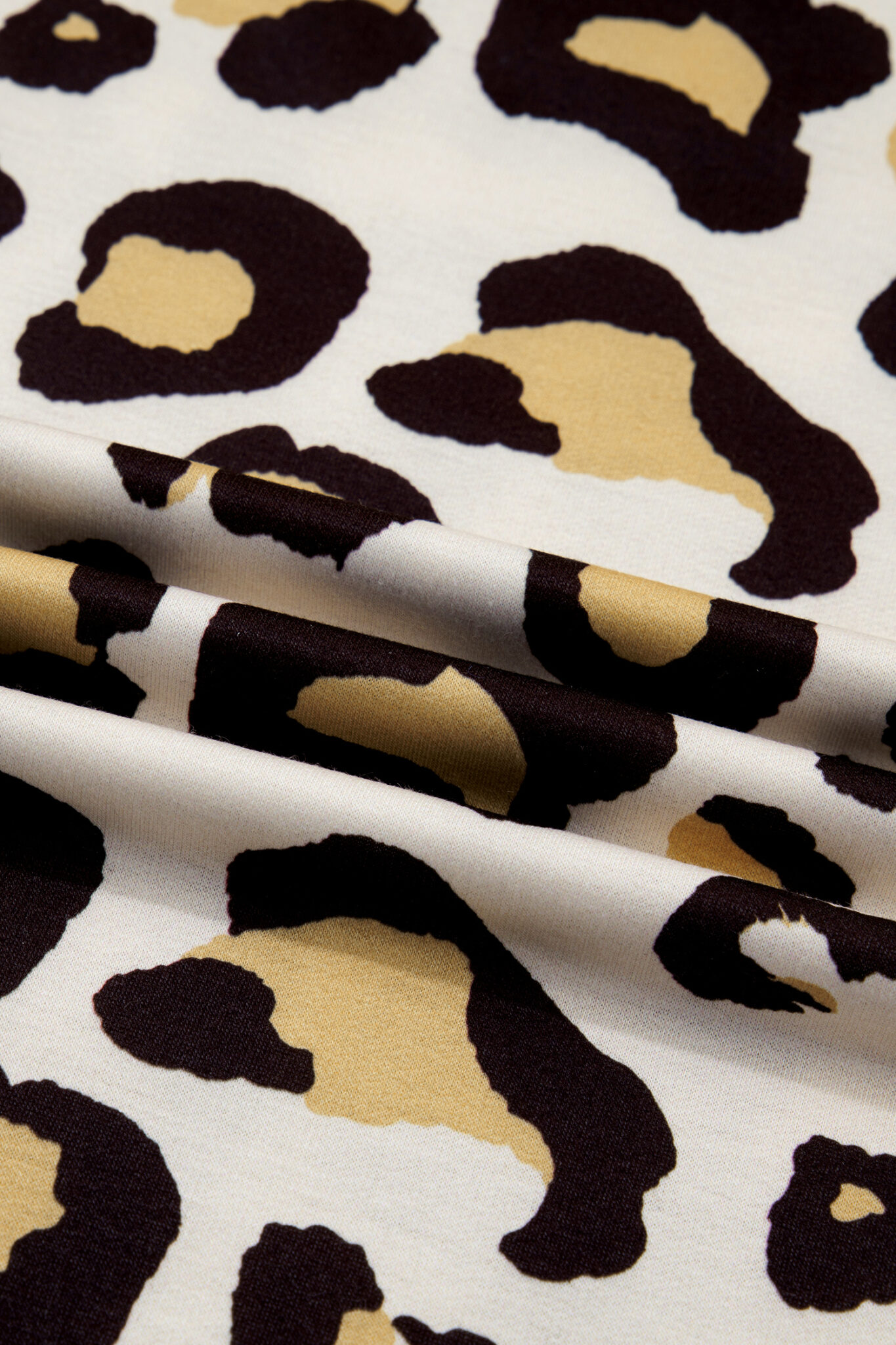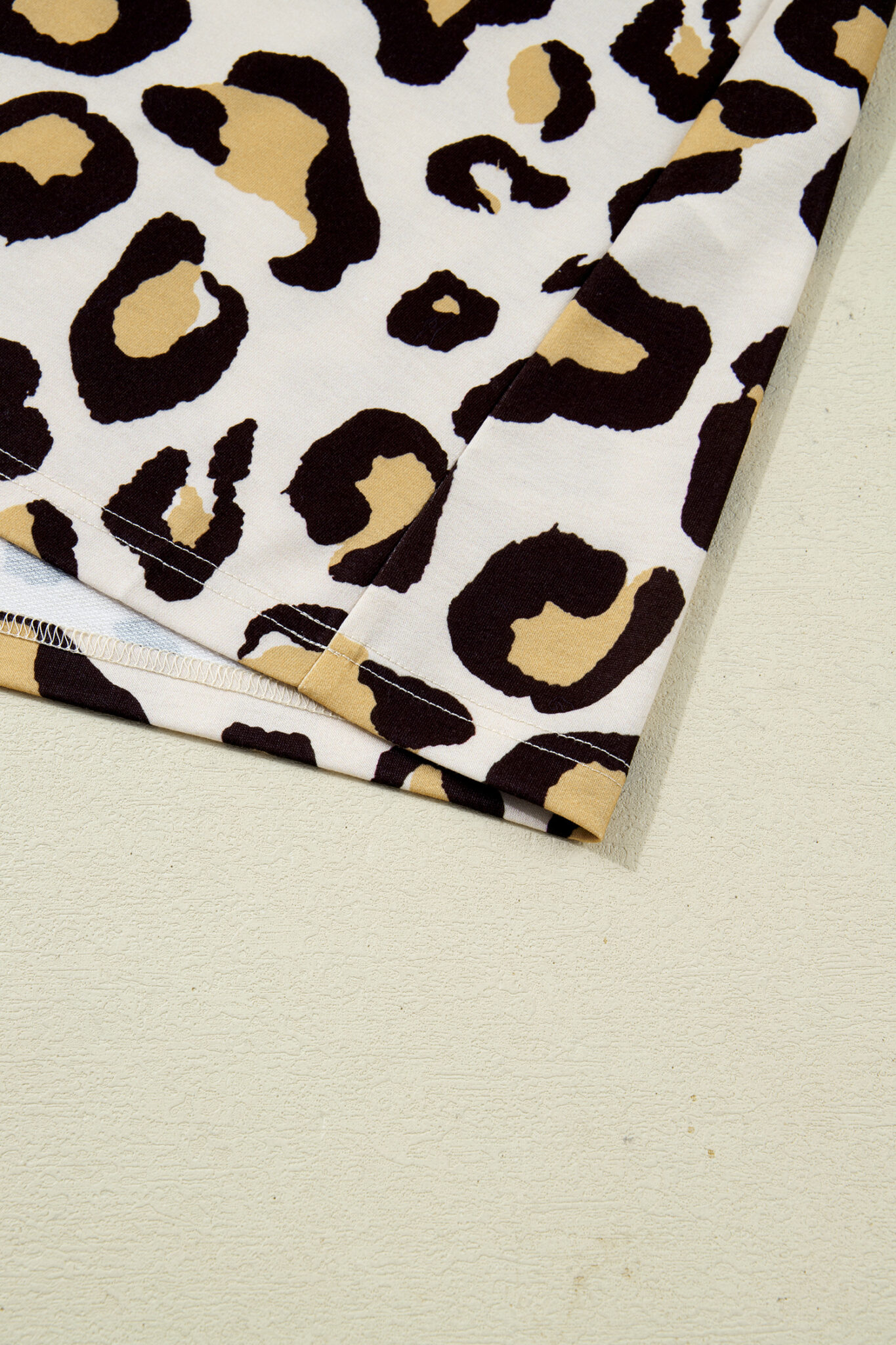 Khaki Leopard Long Sleeve Shift T Shirt Dress with Pockets