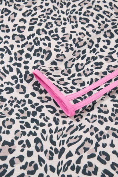 Khaki Leopard Print Contrast V Neck Varsity Stripe Detail Long Sleeve Top