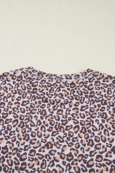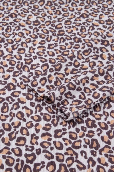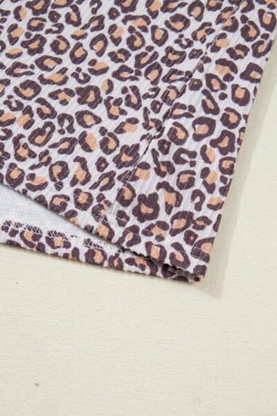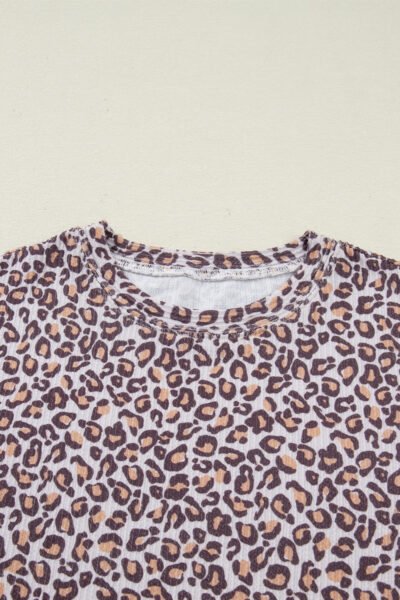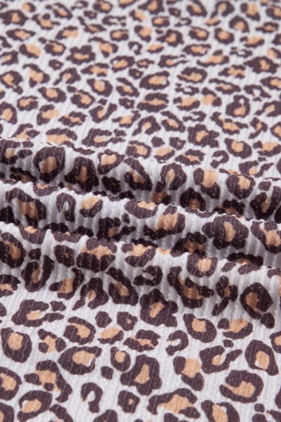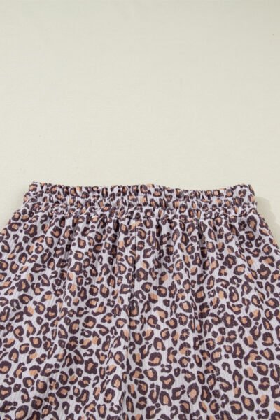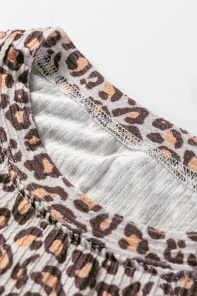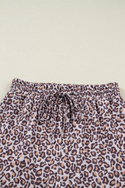 Khaki Leopard Ribbed Long Sleeve Top Drawstring Shorts 2pcs Outfit