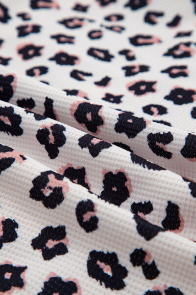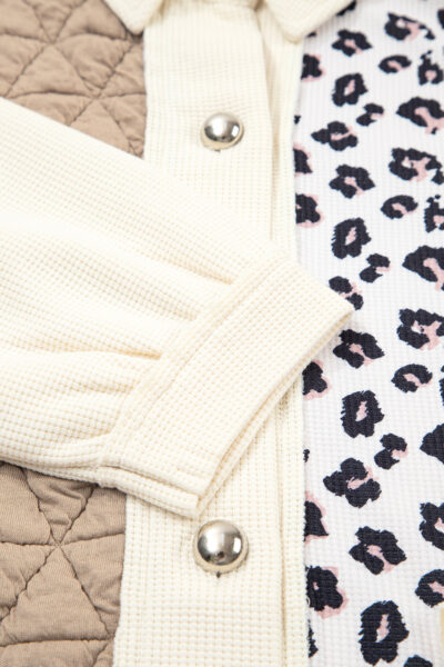 Khaki Leopard Waffle Quilted Patchwork Button Front Jacket