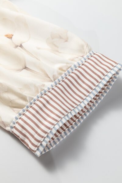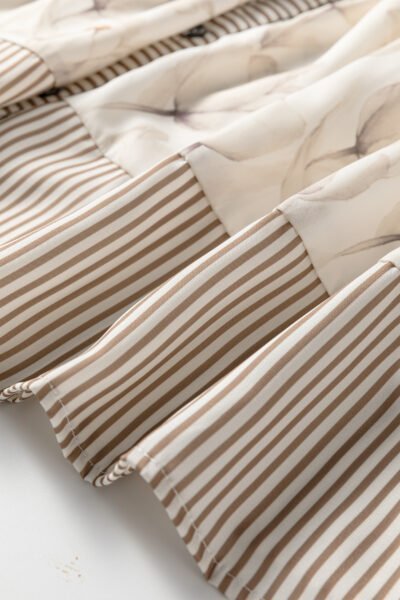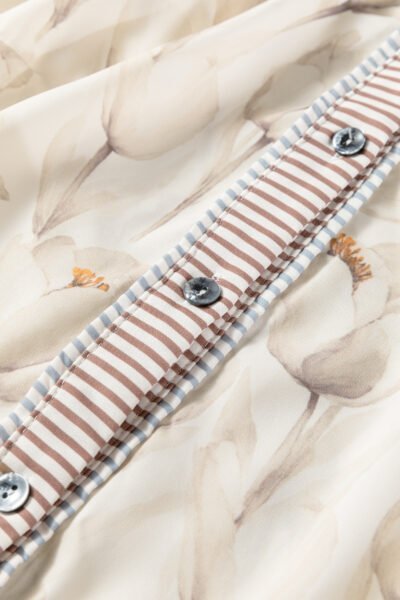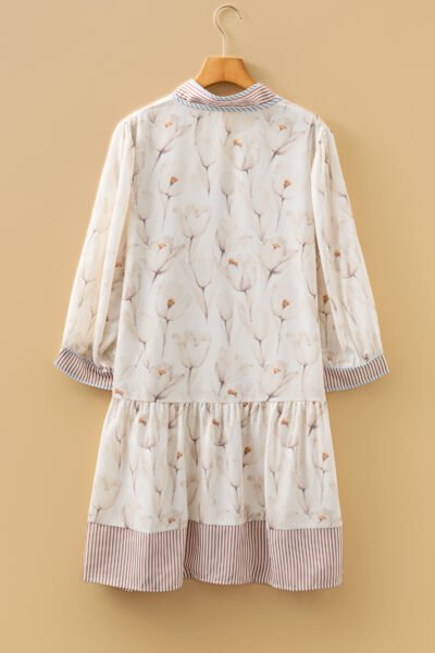 Khaki Plus Size Floral Print Striped Trim Patchwork Button Down A-line Dress