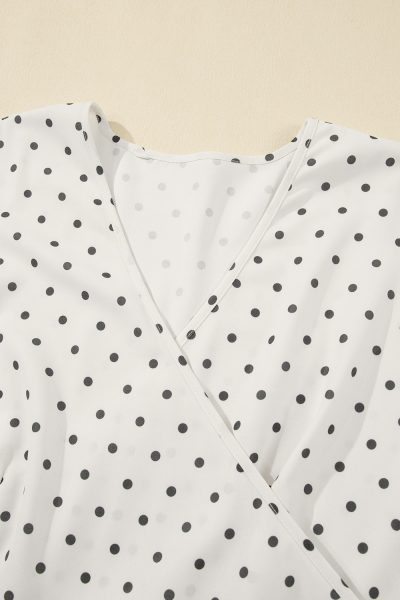 Khaki Polka Dot Surplice V Neck Tied Waist Flutter Sleeve Flowy Plus Size Midi Dress