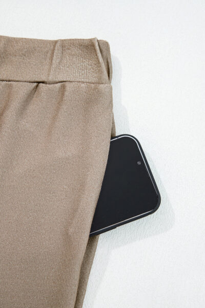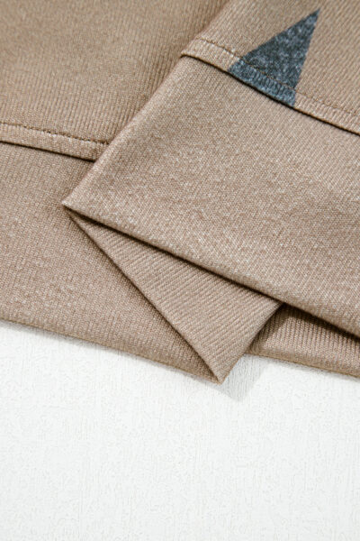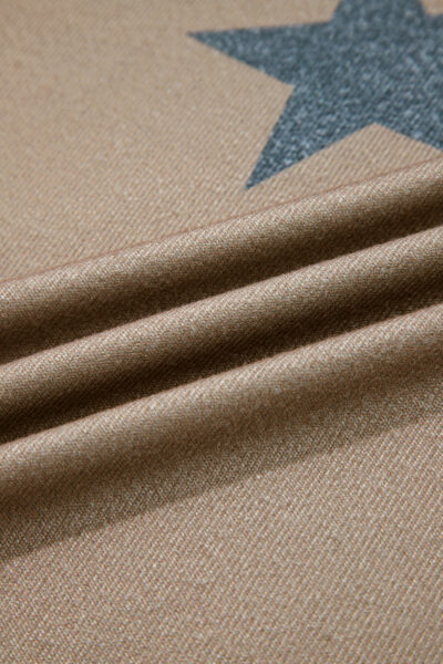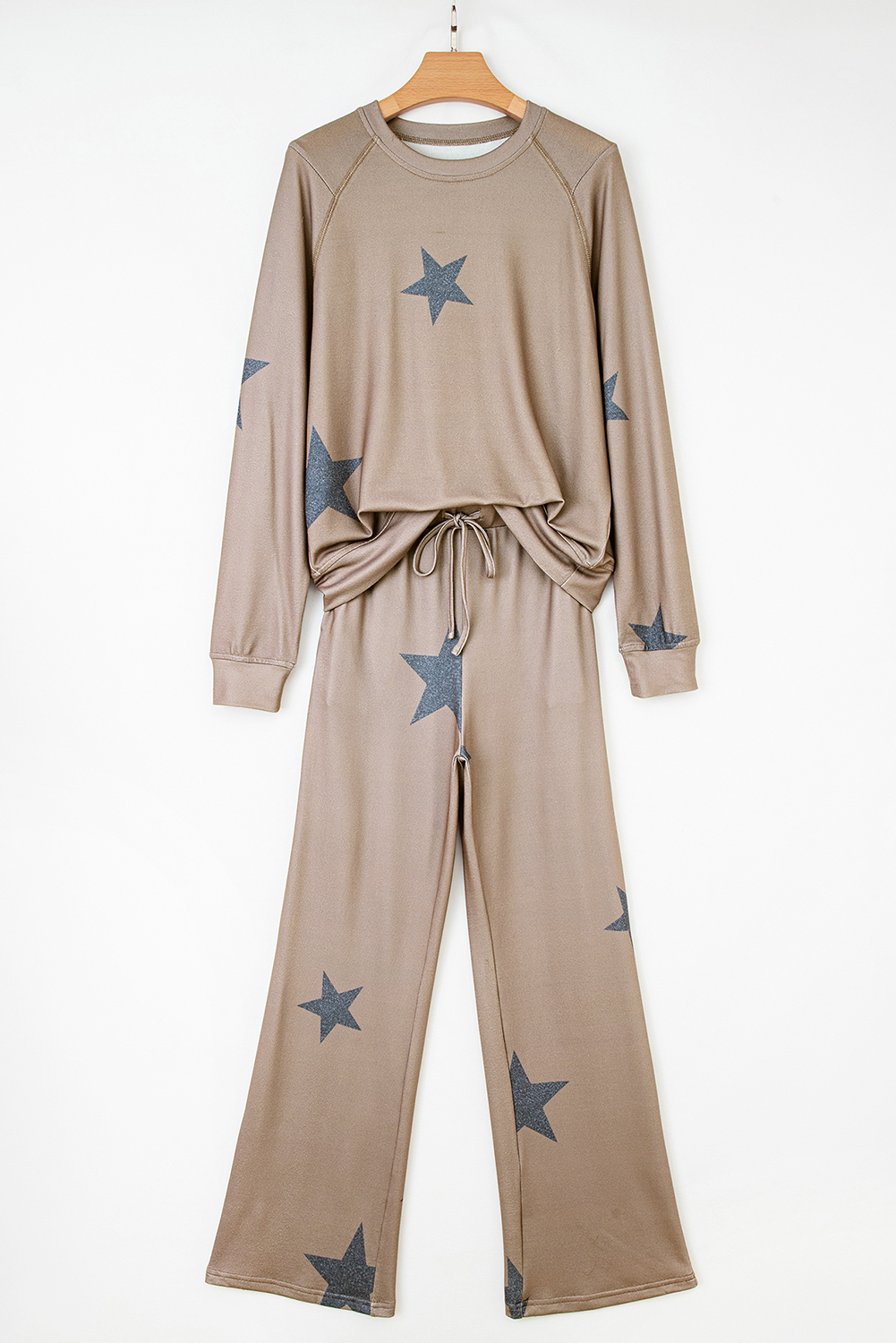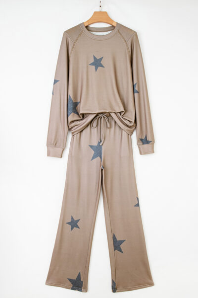 Khaki Retro Star Print Loose Long Sleeve Drawstring Wide Leg 2pcs Lounge Set