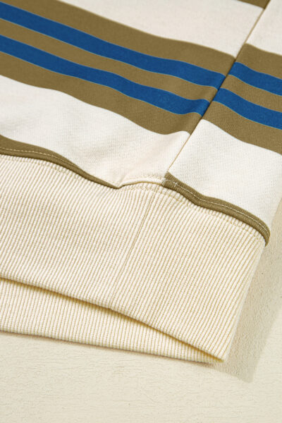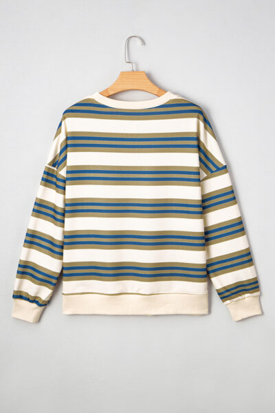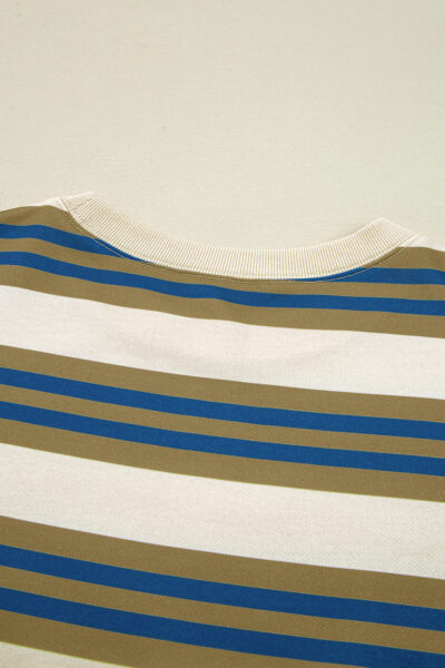 Khaki Stripe Crew Neck Drop Shoulder Pullover Sweatshirt
