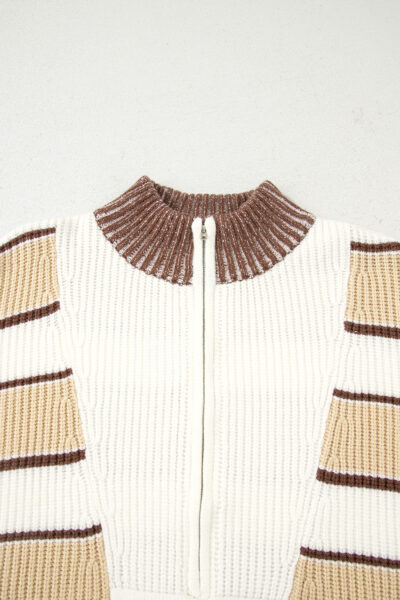 Khaki Stripe Half Zip Drop Shoulder Womens Sweater